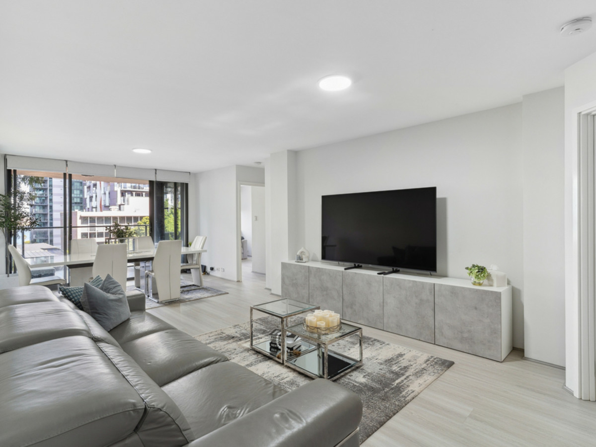 Step inside and you're instantly greeted by floor-to-ceiling glass that fills the open-plan living area with natural light. The kitchen doesn't mess around - stone benchtops, stainless steel appliances, and plenty of storage for your secret snack stash. The master bedroom is peaceful, private, and generous in size - with built-in robes, a private ensuite and direct access to the balcony.