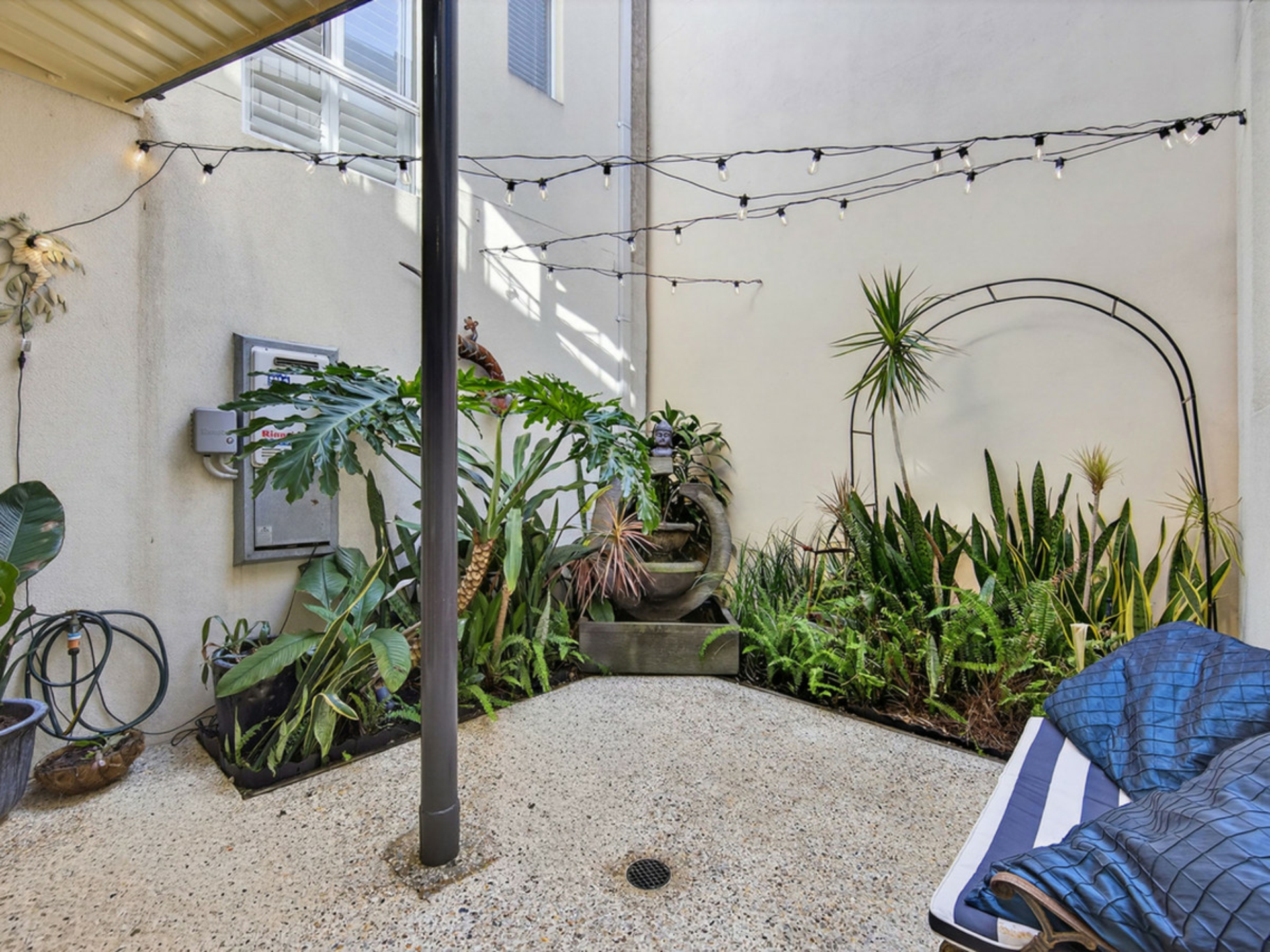 Across the home, practical inclusions have been cleverly integrated, including a laundry chute, dual electrical switchboards and a downstairs kitchenette, ideal for guests or multi-level living. The ground level opens to an aggregate-finished atrium with a tranquil water feature, providing a private, calming retreat and a unique architectural focal point.