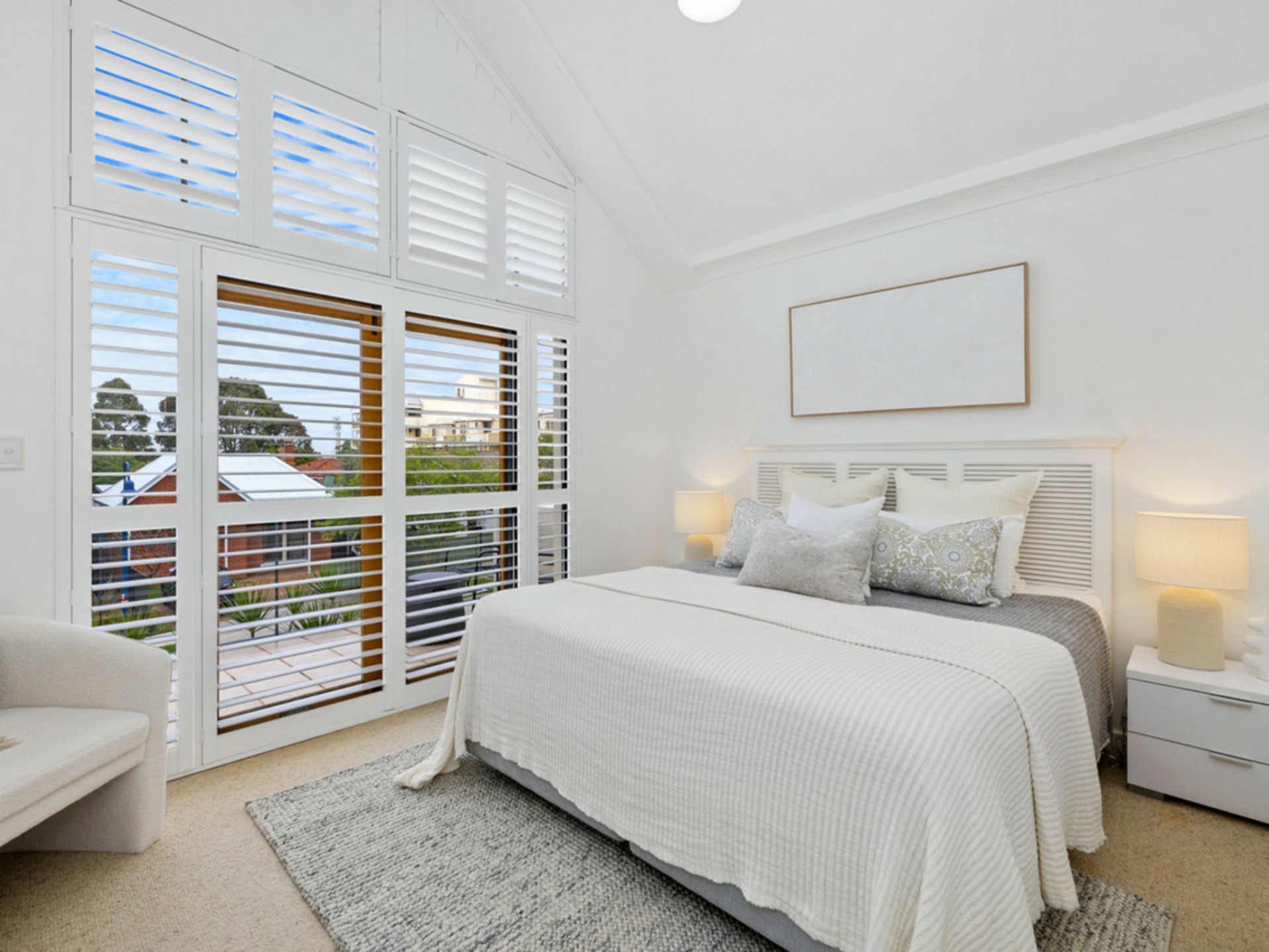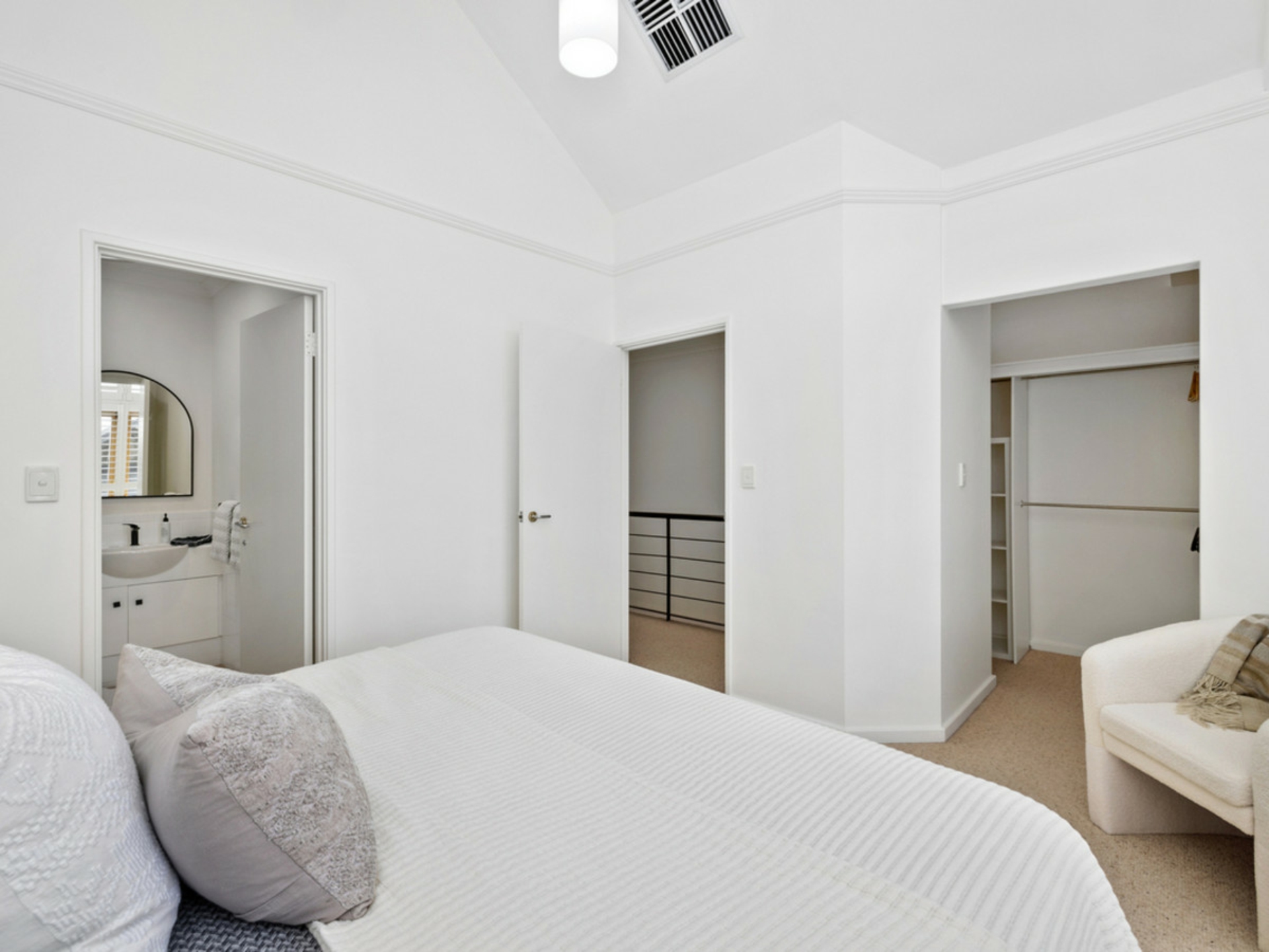 Upstairs, the main bedroom is a true retreat, highlighted by soaring raked ceilings, plantation shutters and double doors opening to a private balcony with beautiful river views - the perfect spot to unwind. A walk-in robe and stylish ensuite complete the suite. Bedroom two offers mirrored built-in robes with semi-ensuite access, while the third bedroom is equally well appointed with built-in storage.