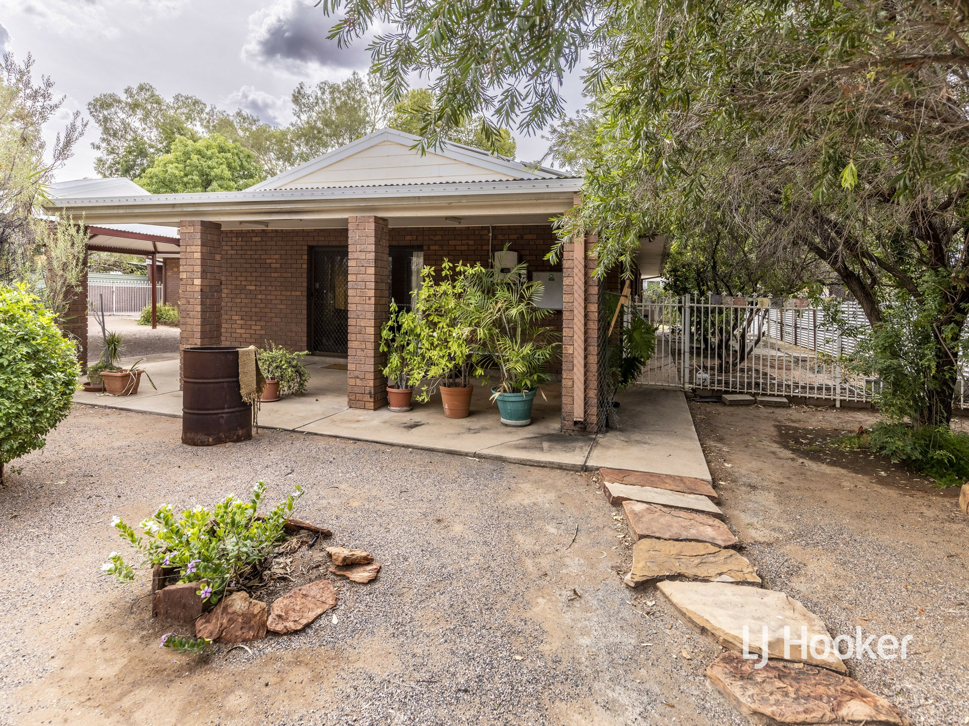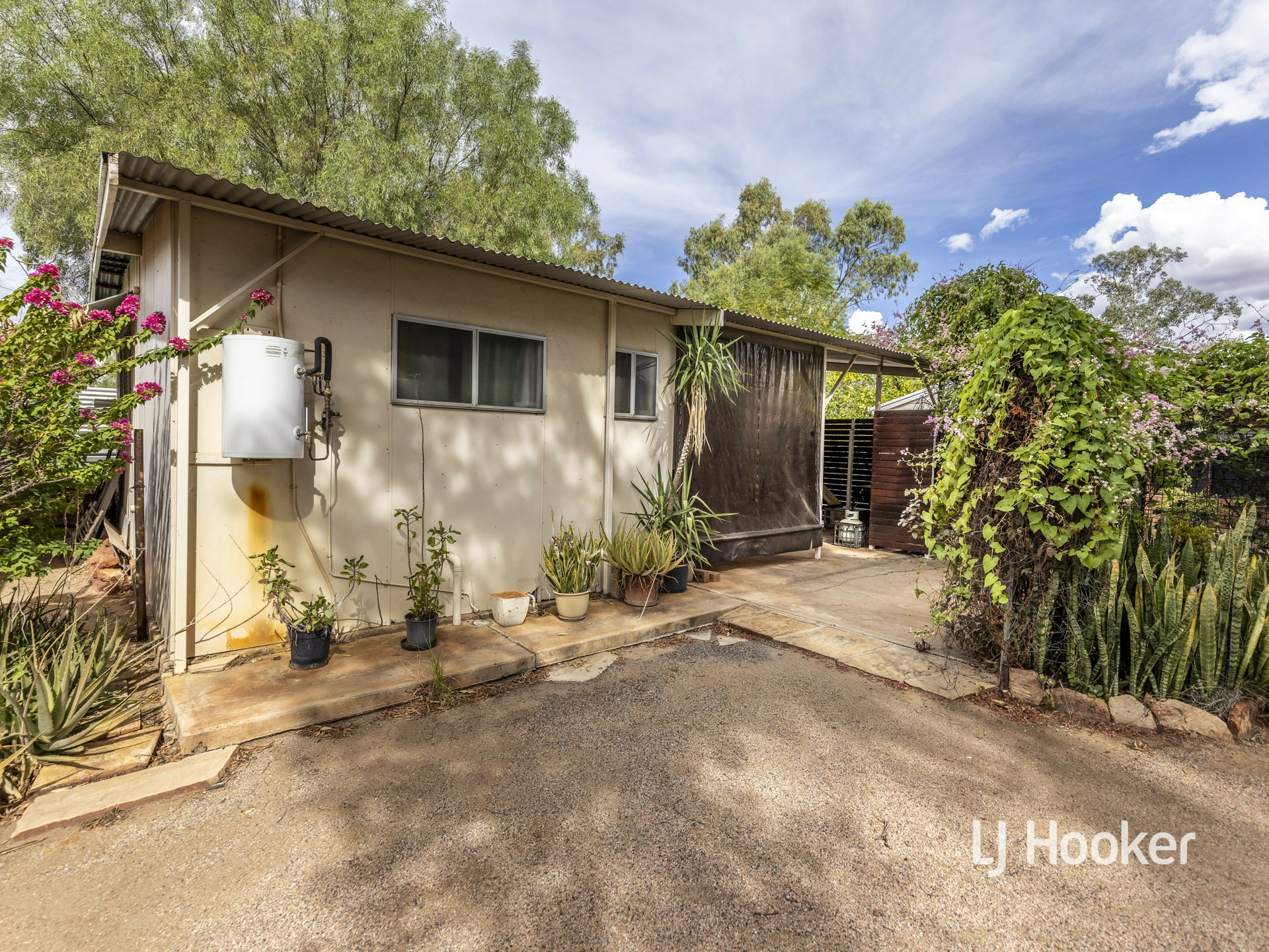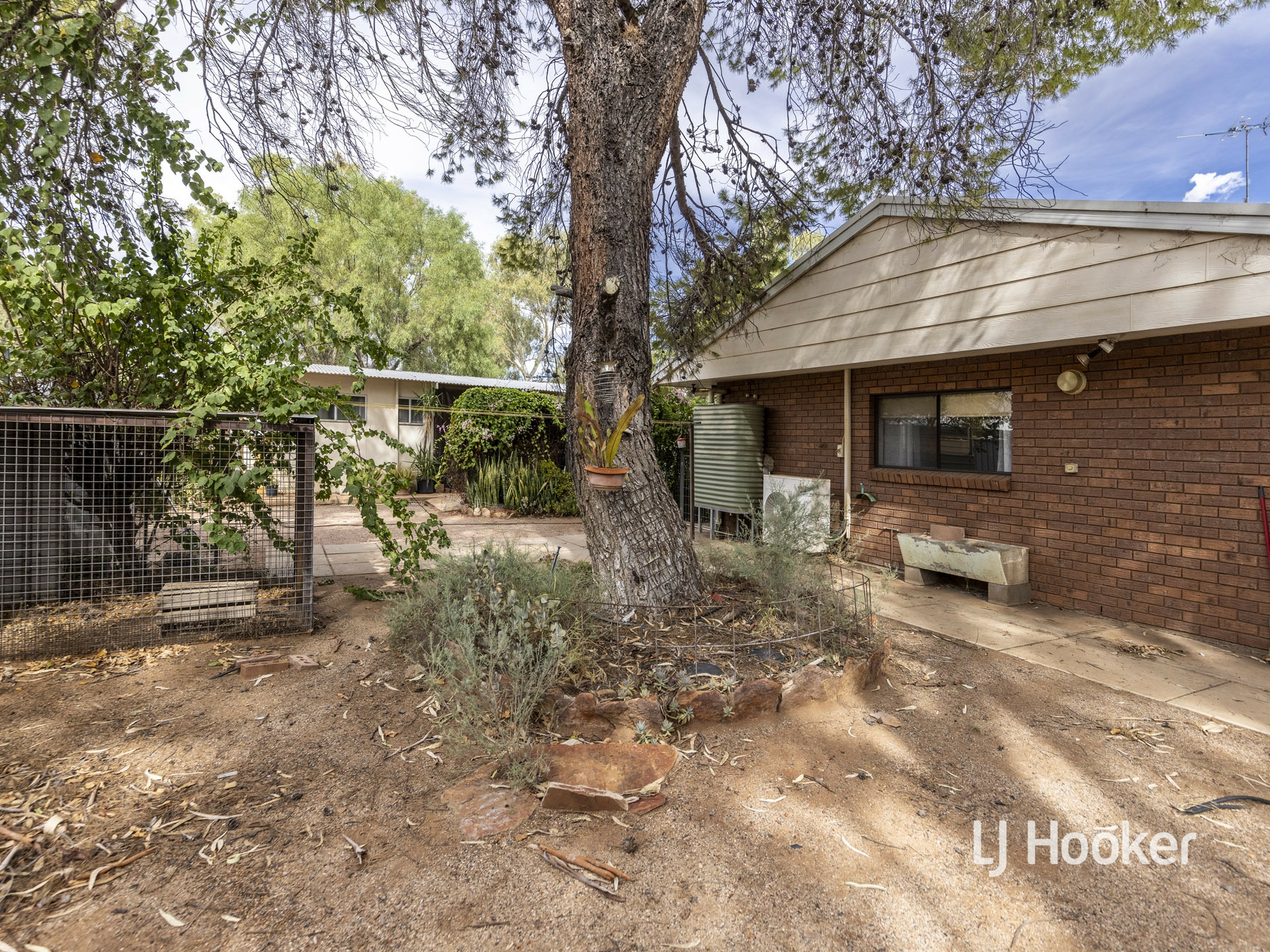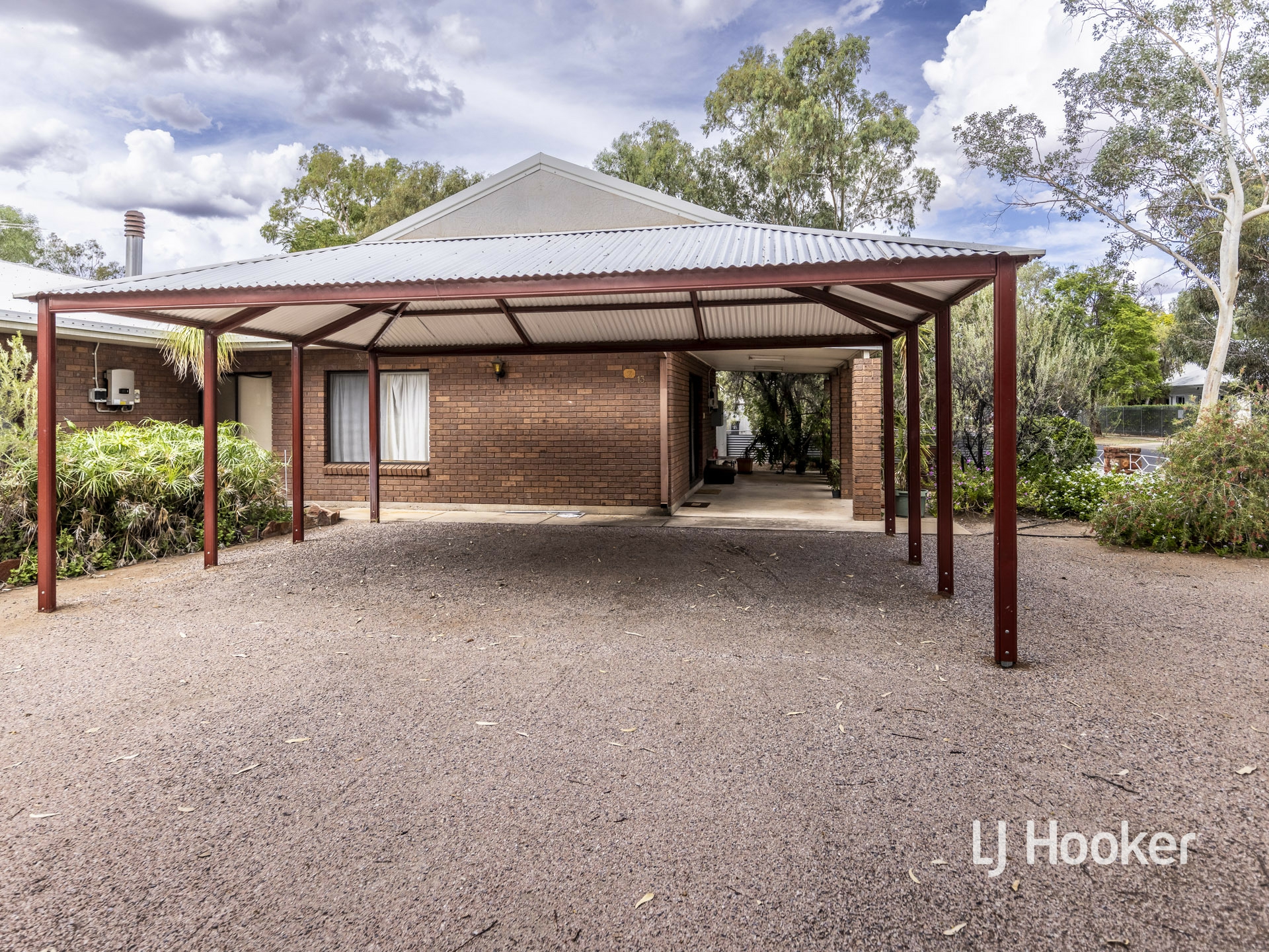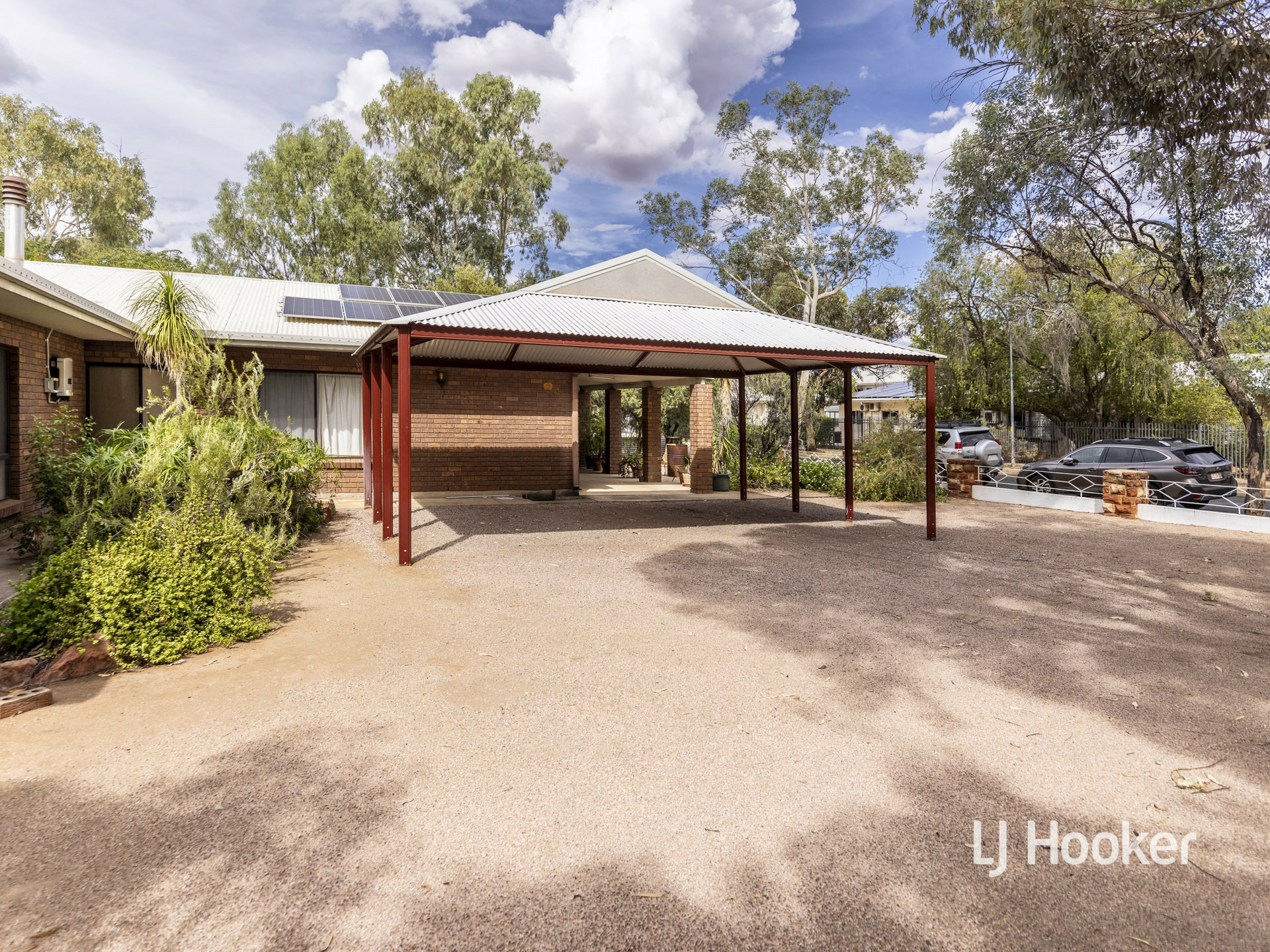 There is a high gable double carport to the front of the property along with a rainwater tank, and a large garden shed at the rear.