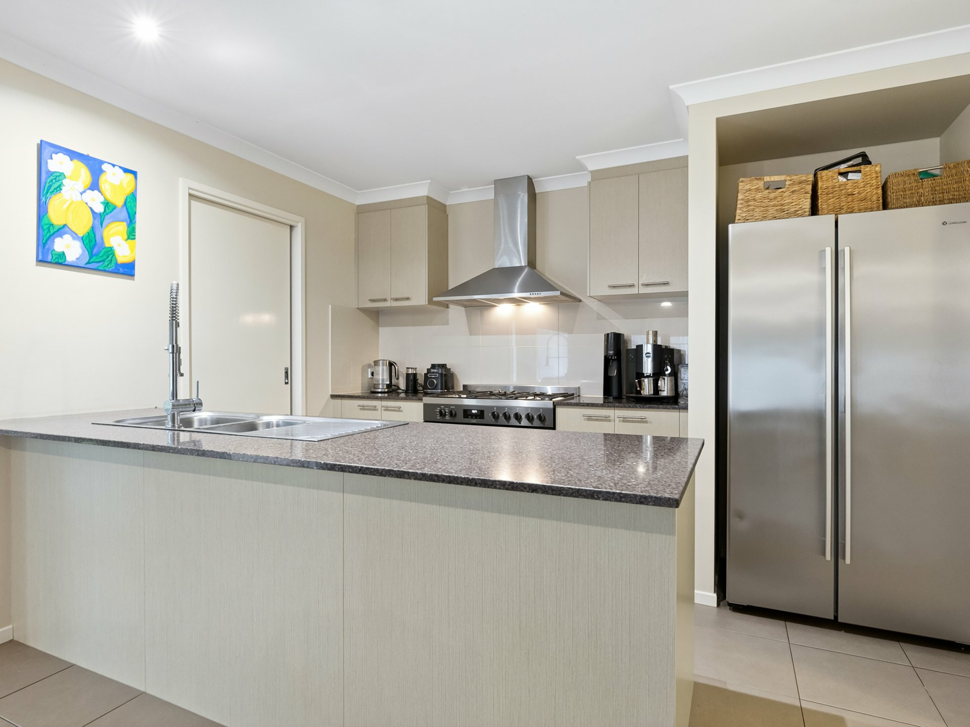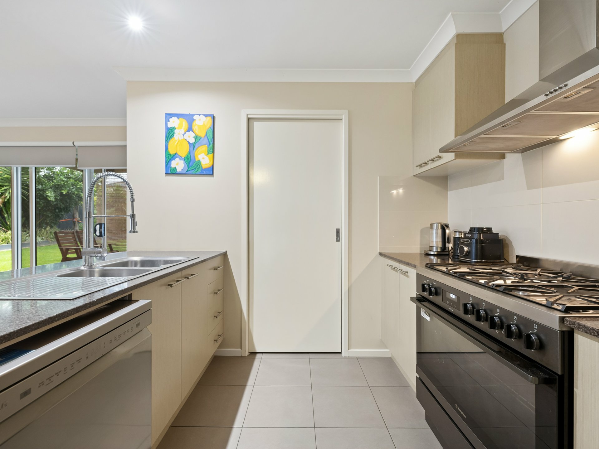 Downstairs is dedicated to relaxed family living, featuring a light-filled open plan kitchen and living zone that seamlessly connects to the outdoor entertaining area. The modern kitchen is well-appointed with a 900mm stove, walk-in pantry, and new dishwasher, making it both stylish and practical. A powder room and laundry are conveniently located nearby, while an additional rumpus room offers flexibility as a second living space, media room, or kids’ retreat.