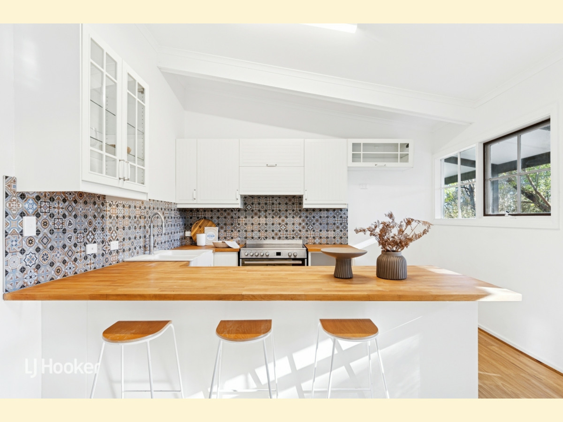 Step inside and you'll immediately notice the vaulted ceilings with exposed beams-adding light, character and a sense of airiness to the heart of the home. From the timber kitchen with Spanish tile splashback, modern freestanding cooktop and oven, to the garden views that flood the main living areas with natural light, every detail has been thoughtfully considered.