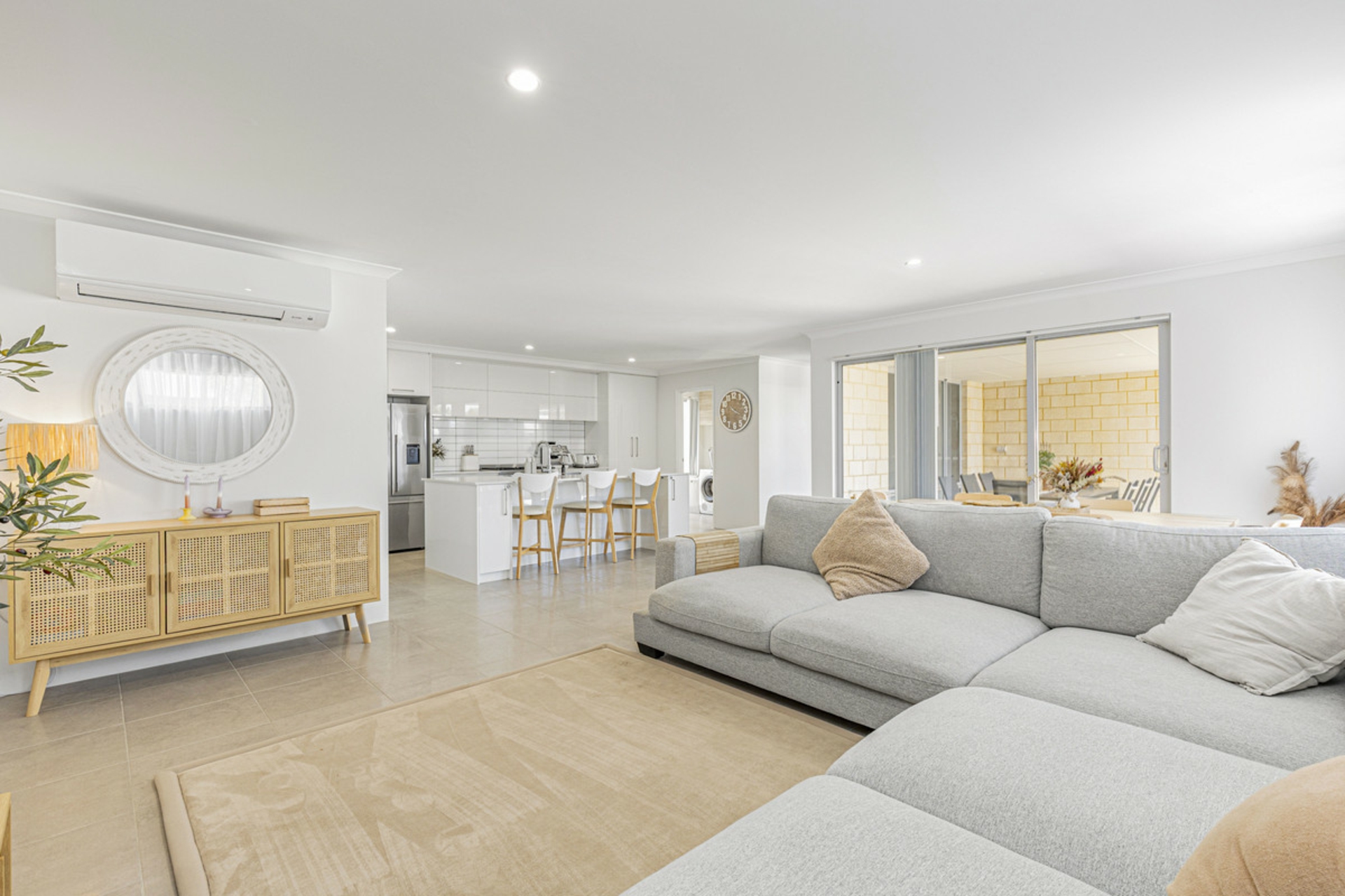Recently constructed by Home Group WA, this premium-quality residence showcases modern finishes throughout, including stone benchtops and a functional open plan layout ideal for family living. The master bedroom features a walk in robe and private ensuite, while the low-maintenance exterior with artificial turf and paving ensures you can spend more time enjoying the coastal lifestyle.