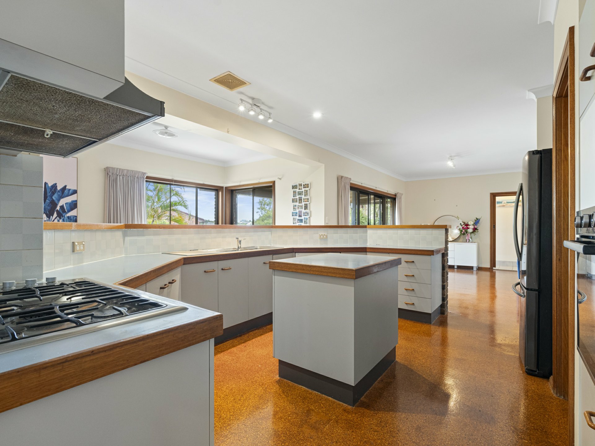 The lifestyle on offer here is built for the ultimate entertainer. The kitchen, featuring a five-burner gas stove and walk-in pantry, maintains a clear line of sight to the outdoor area so you are always part of the action especially behind the striking exposed brickwork of the breakfast bar.