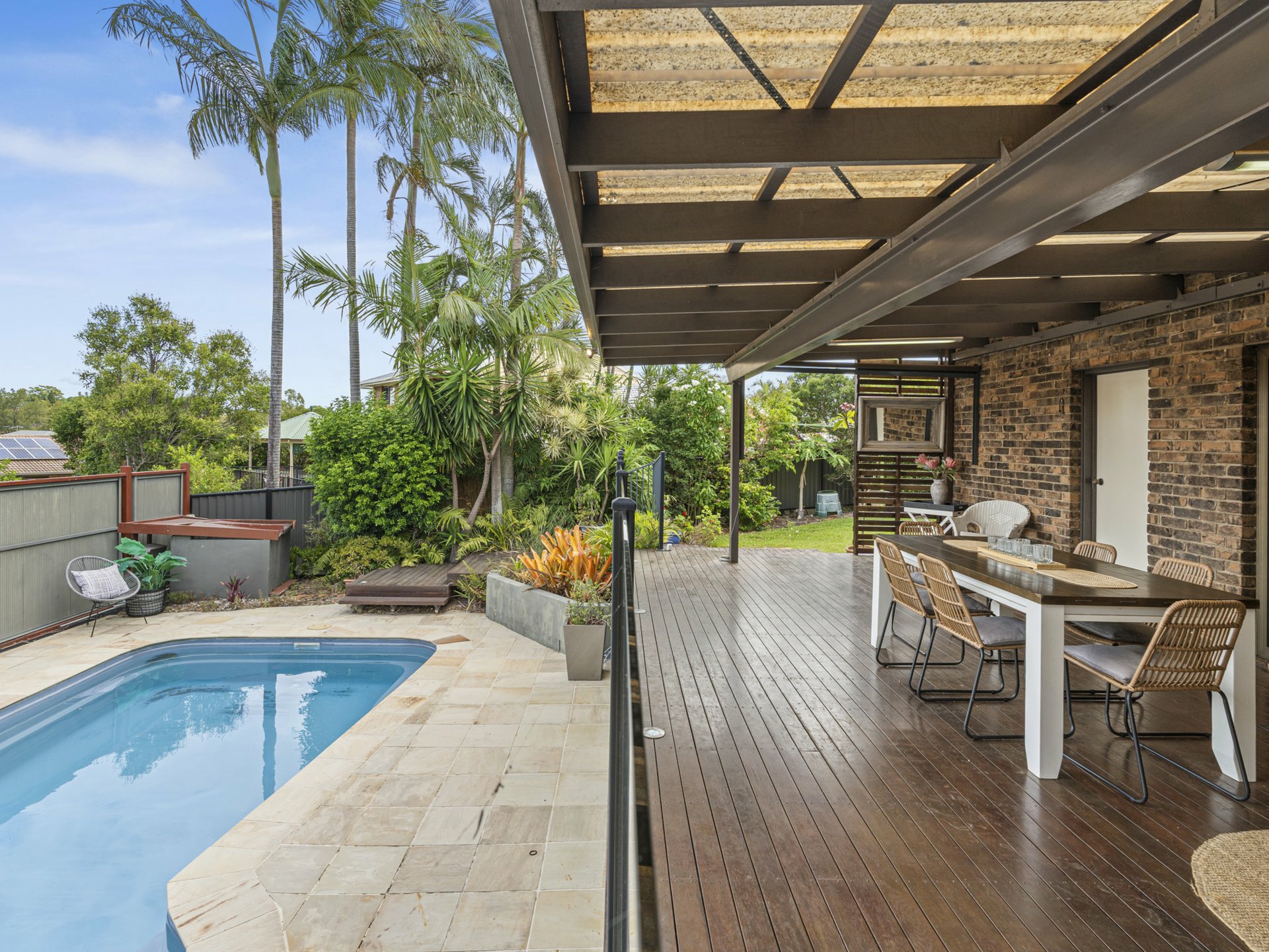 Transition seamlessly to the covered timber-decked patio, which overlooks a sparkling in-ground swimming pool while low-maintenance gardens provide privacy and tranquillity. Whether you're unwinding by the pool, enjoying a quiet morning coffee on the deck, or hosting a lively barbecue, this outdoor space is designed to be enjoyed.