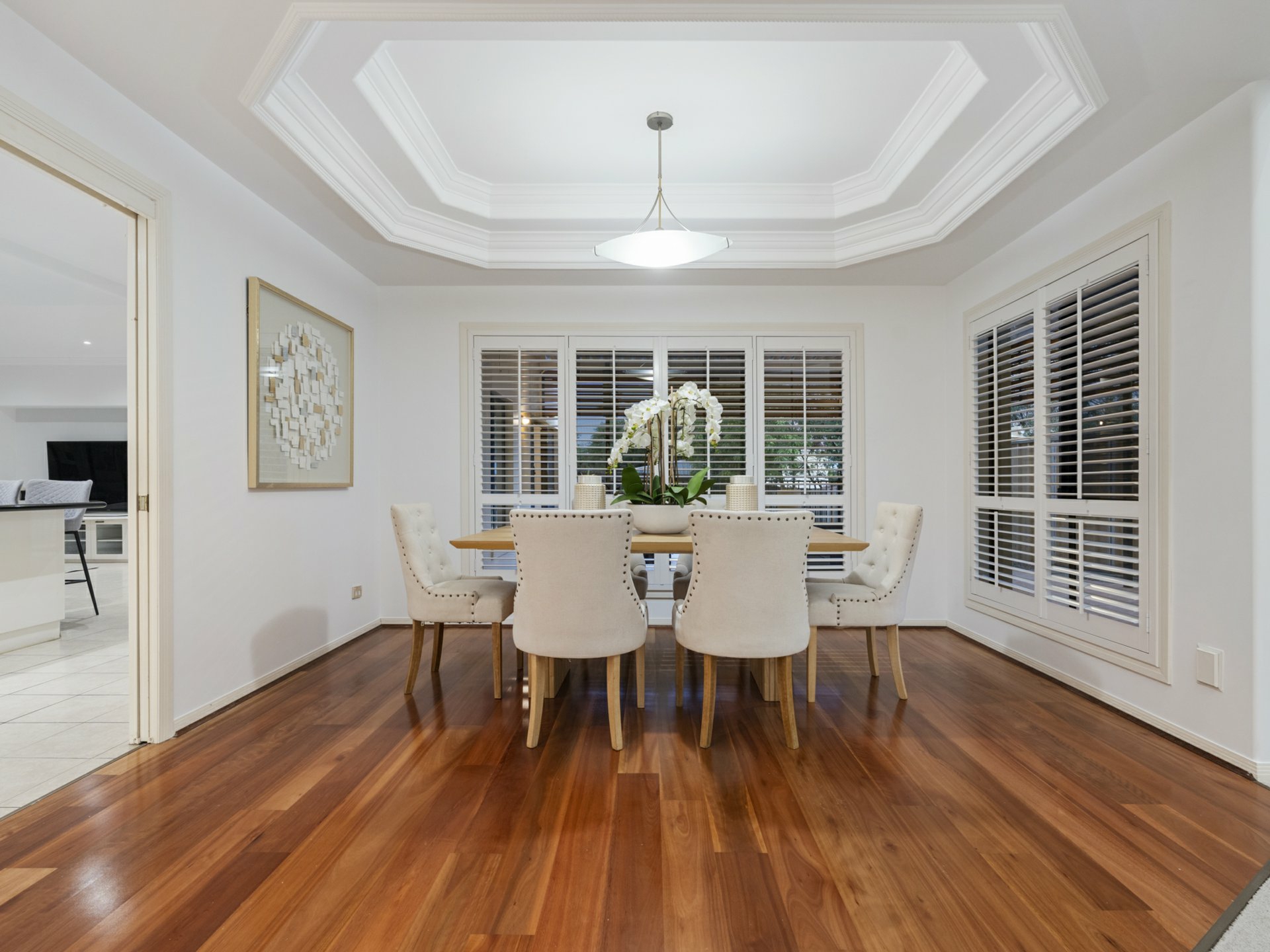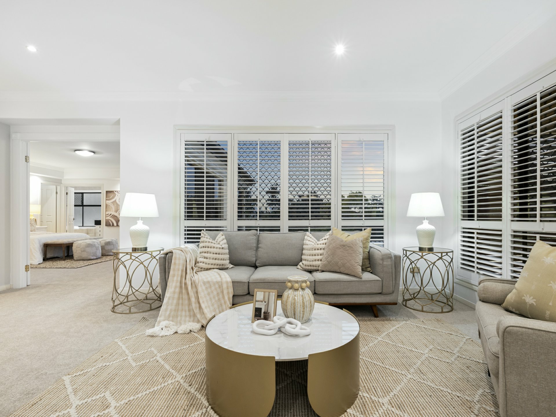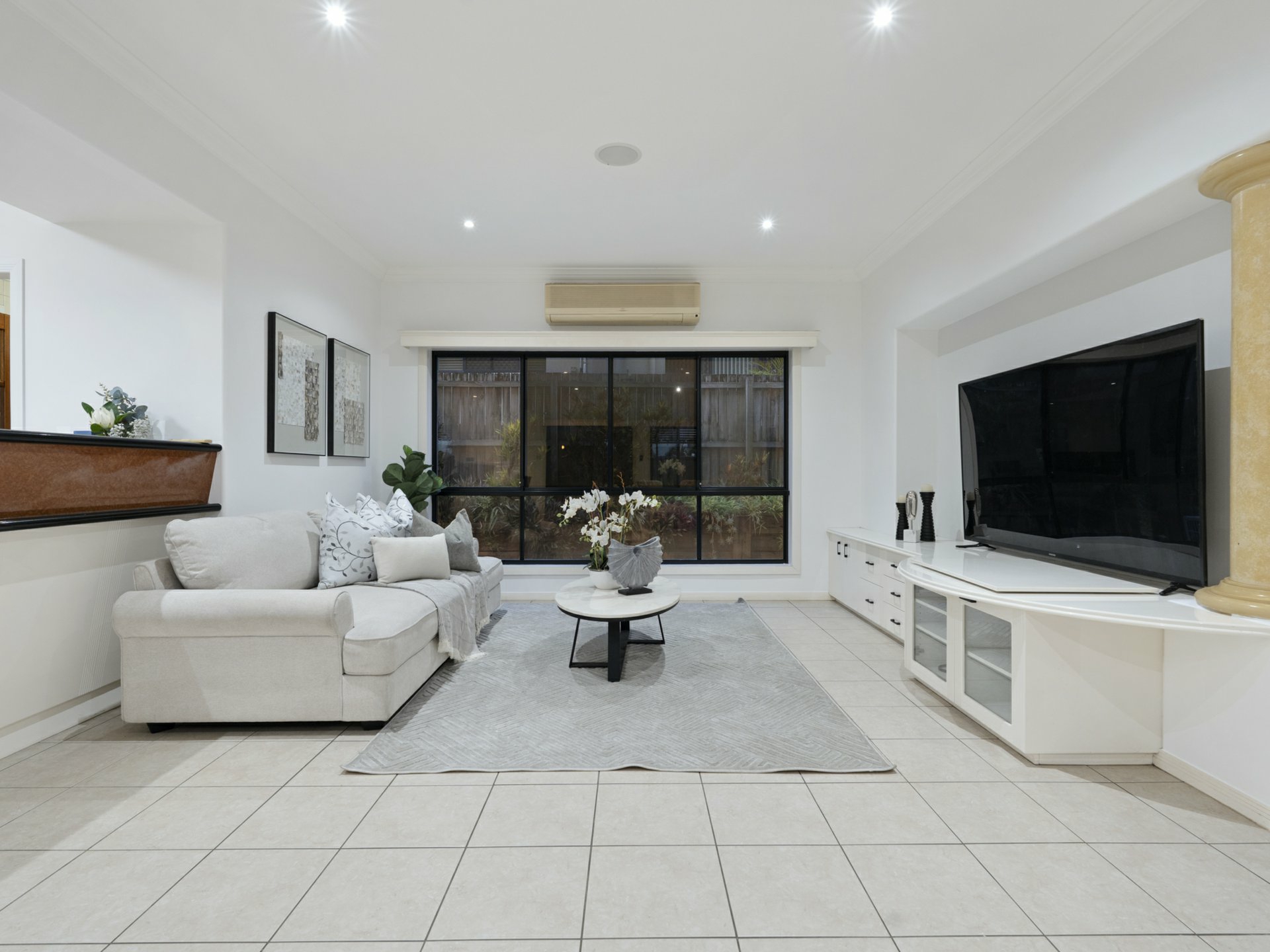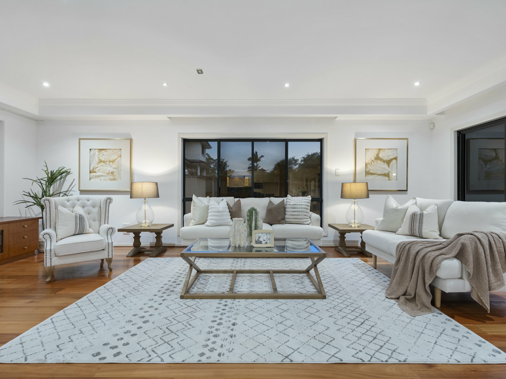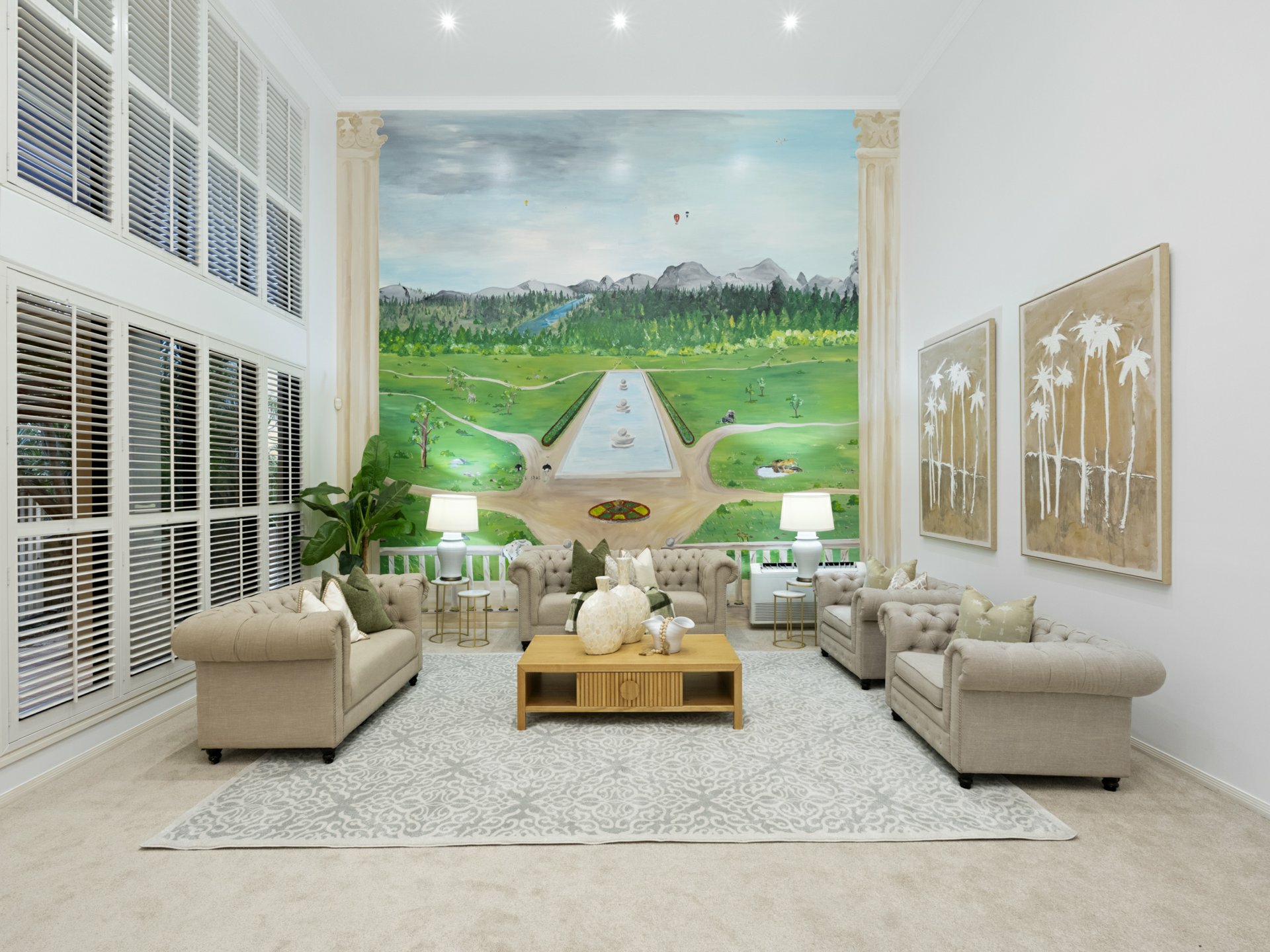 Multiple living areas provide flexibility for both everyday family life and entertaining. A sunken formal lounge offers a sophisticated retreat beneath the soaring ceiling, while the expansive family and dining zones connect seamlessly to the kitchen and outdoor entertaining area.