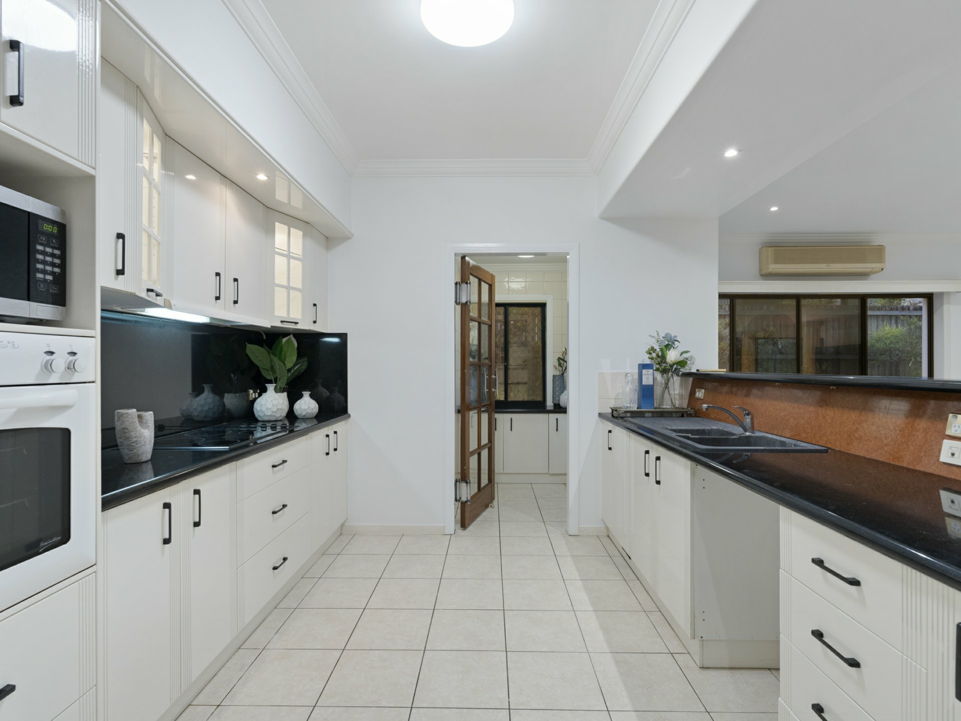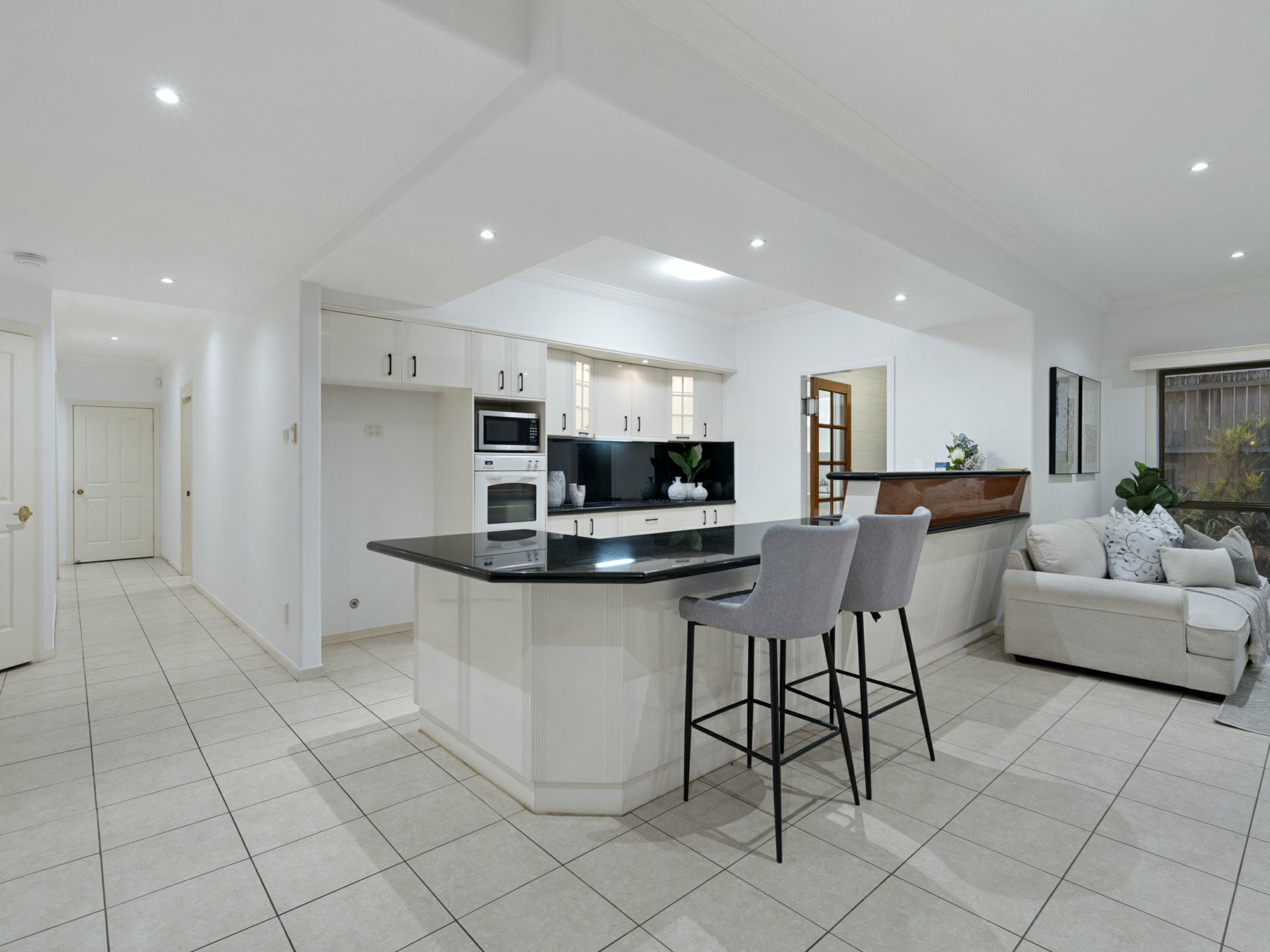At the heart of the home, the spacious kitchen offers generous bench space, extensive cabinetry, and an open connection to the surrounding living areas. A unique highlight is the dual-kitchen arrangement, featuring a main kitchen with electric cooktop alongside a separate enclosed butler's kitchen with gas cooktop - ideal for strong-flavour cooking or keeping mess separated when entertaining.