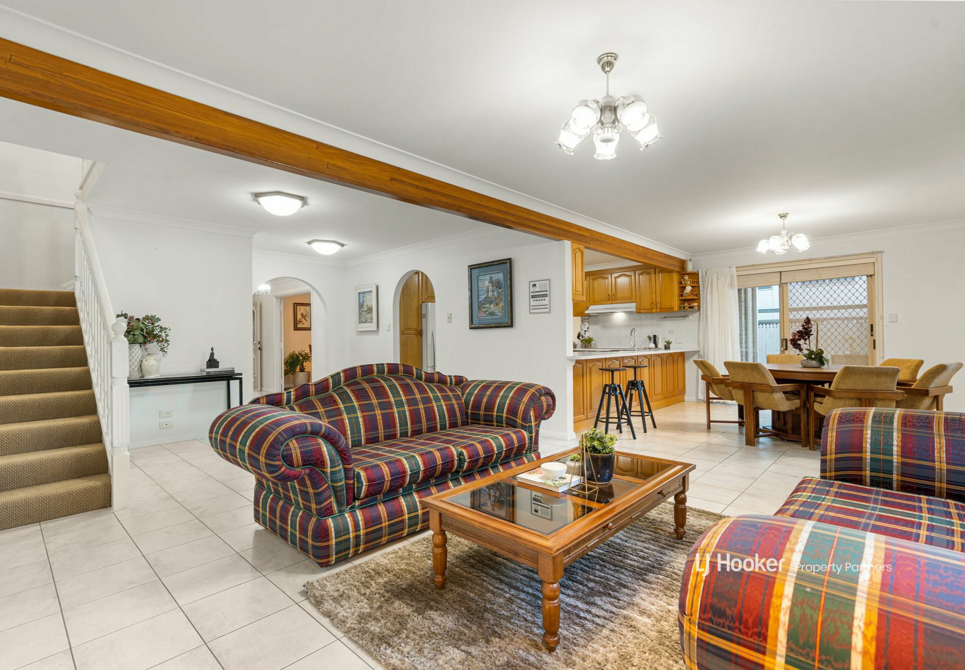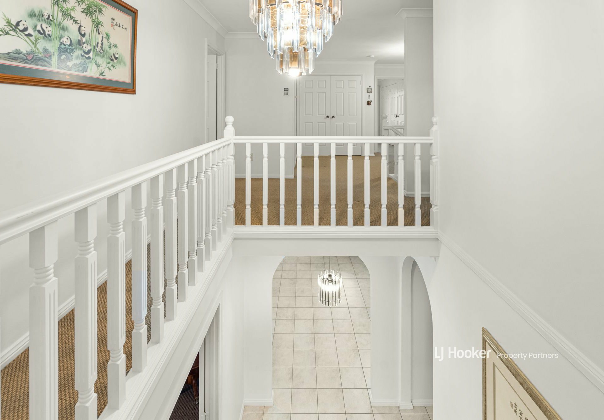 - Lower: formal lounge & dining rooms, family living, kitchen, bedroom, bathroom, laundry