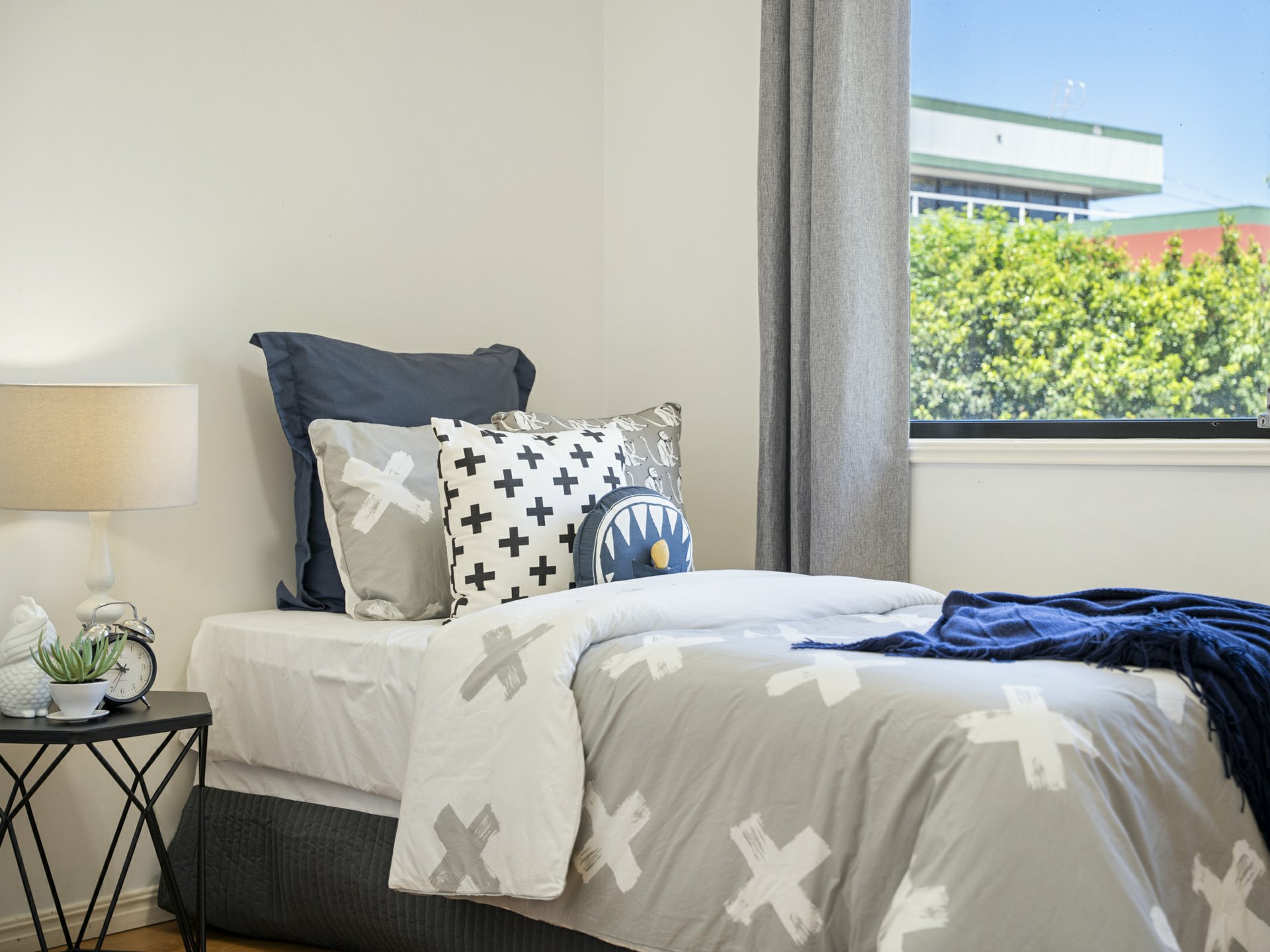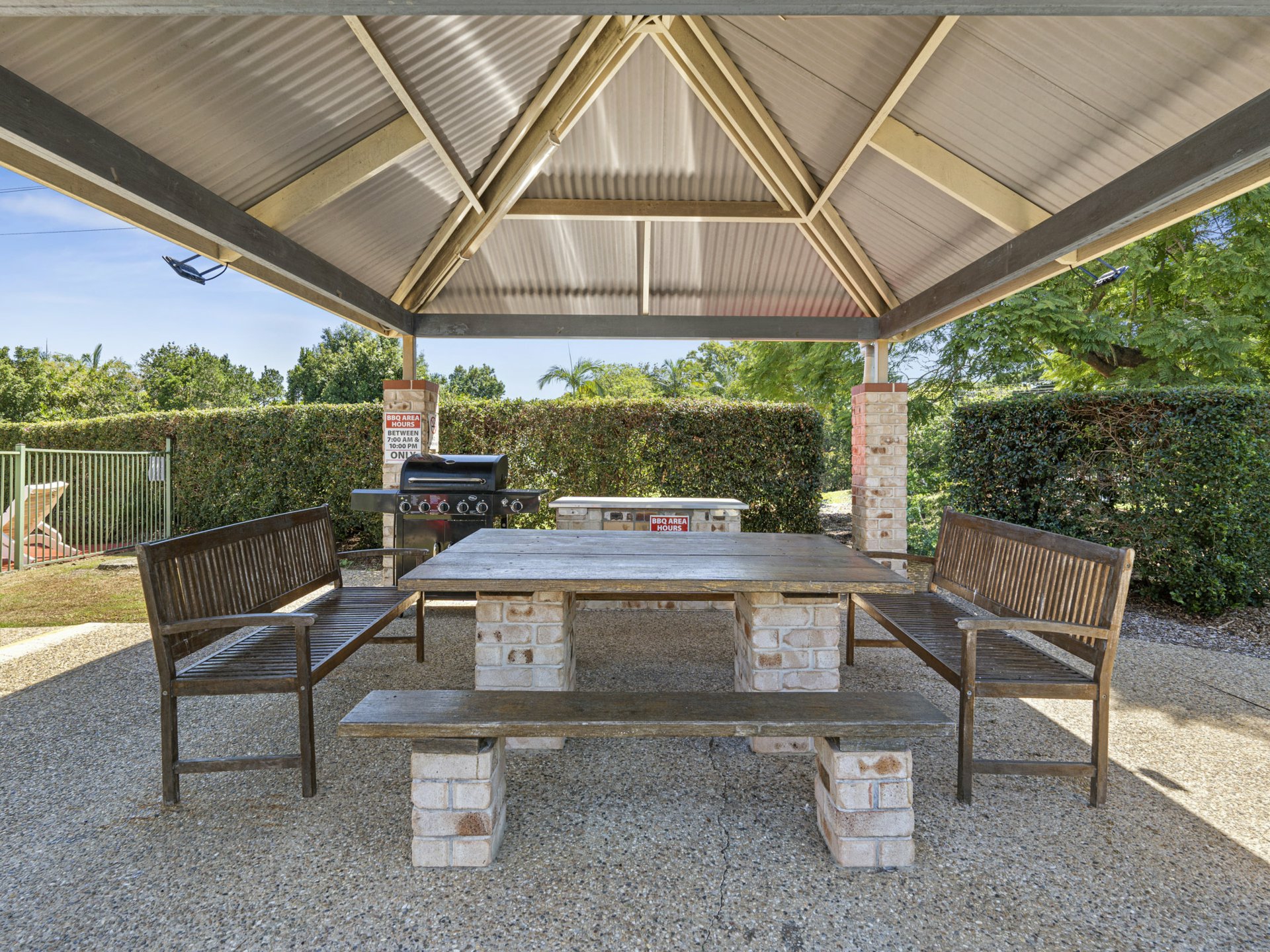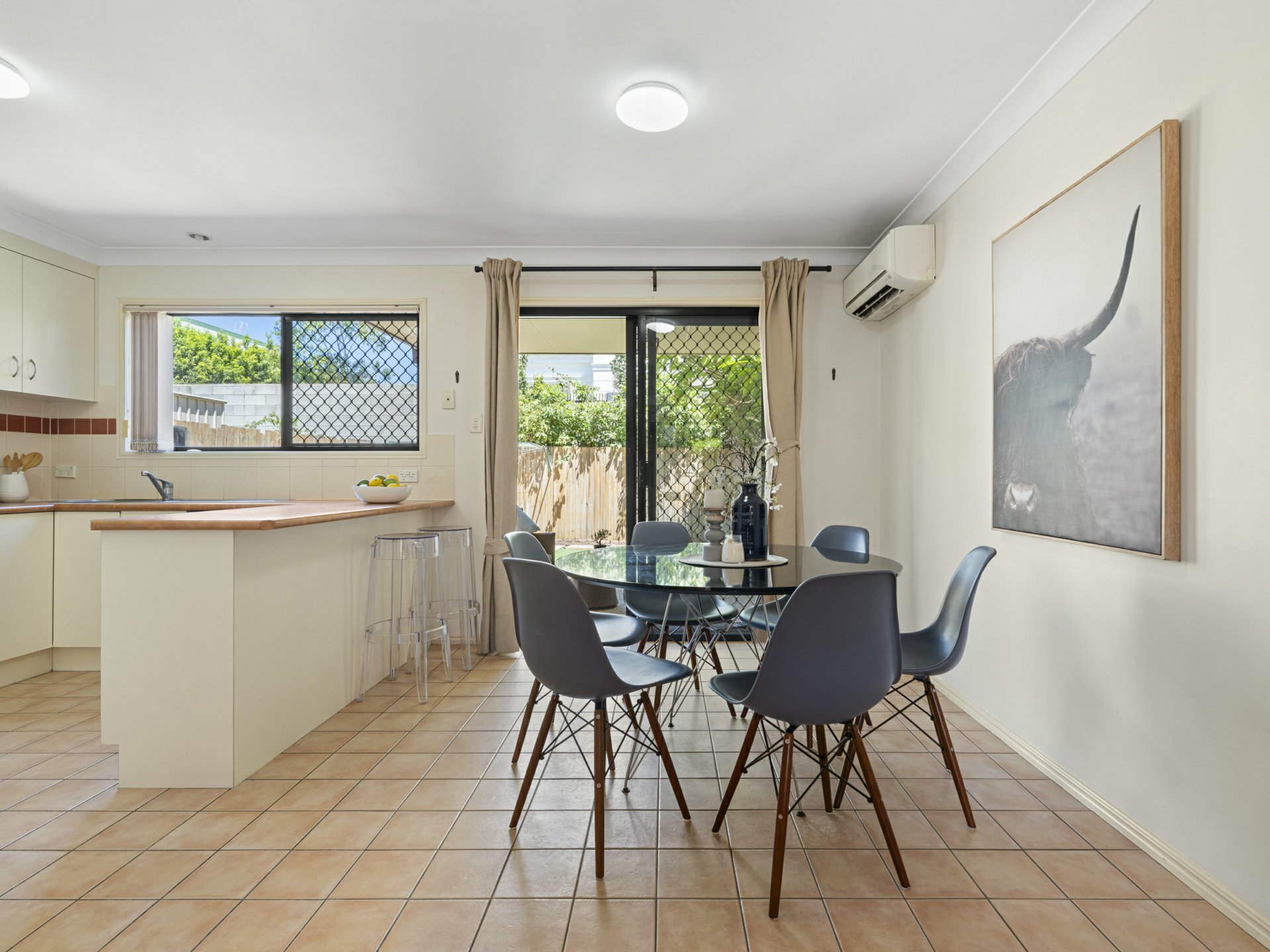 From the meal's hub, sliding doors open onto a covered alfresco patio overlooking a fenced courtyard with lawn and space for drying clothes under the Queensland sun. You could easily get creative out here if gardening is your thing or just spend your outdoor time in or beside the onsite community pool that's maintained for you by the management!