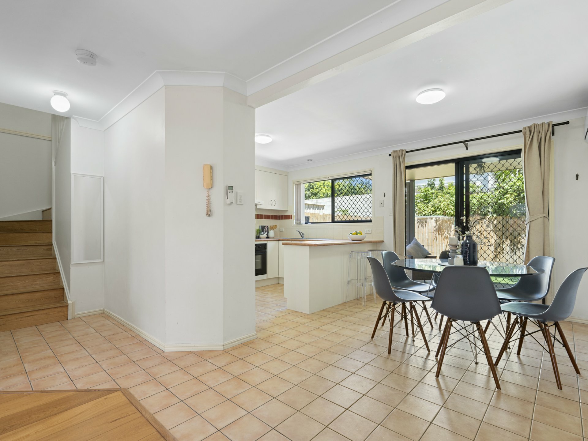 - Intercom entry, secure single garage, understairs storeroom, security screens
