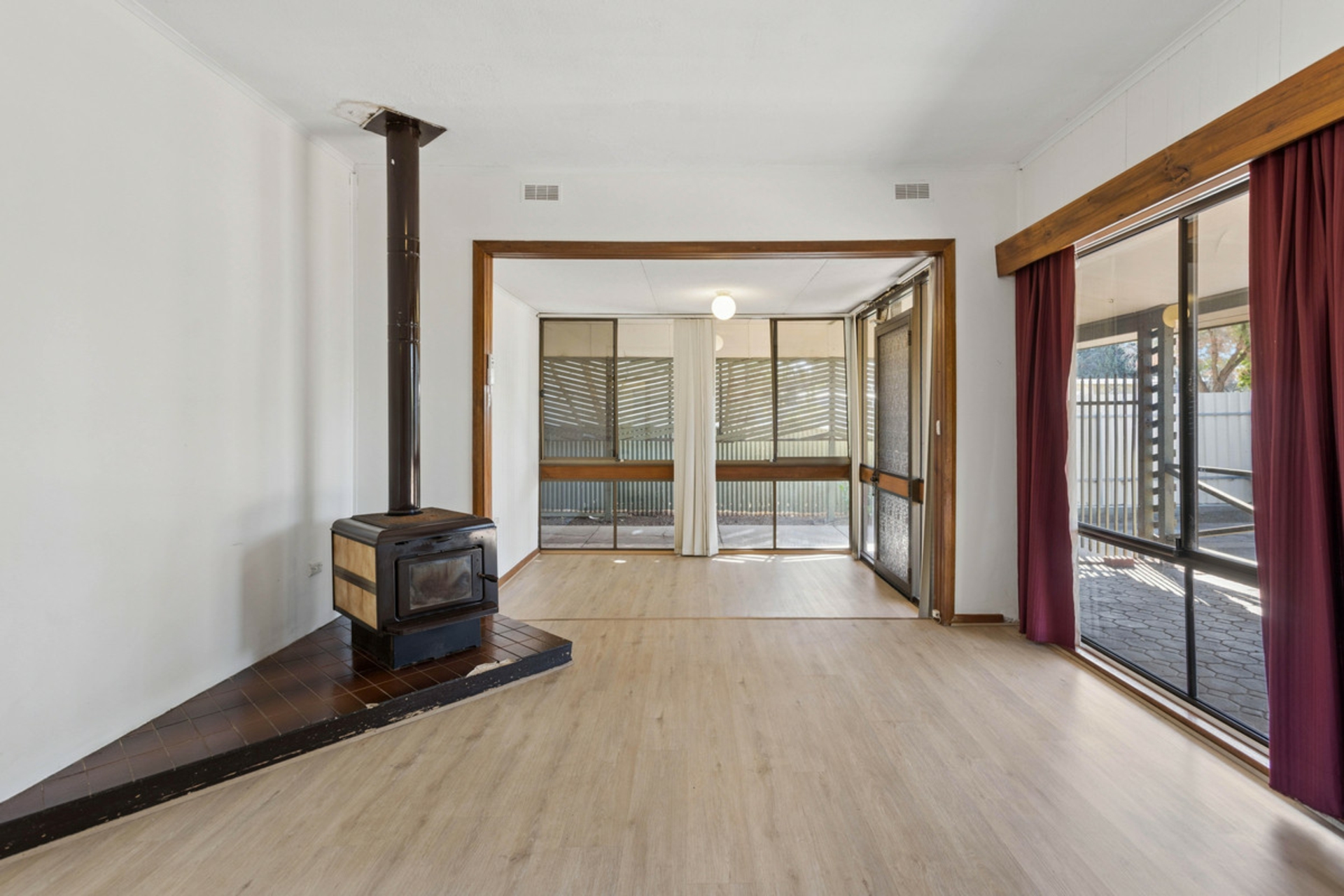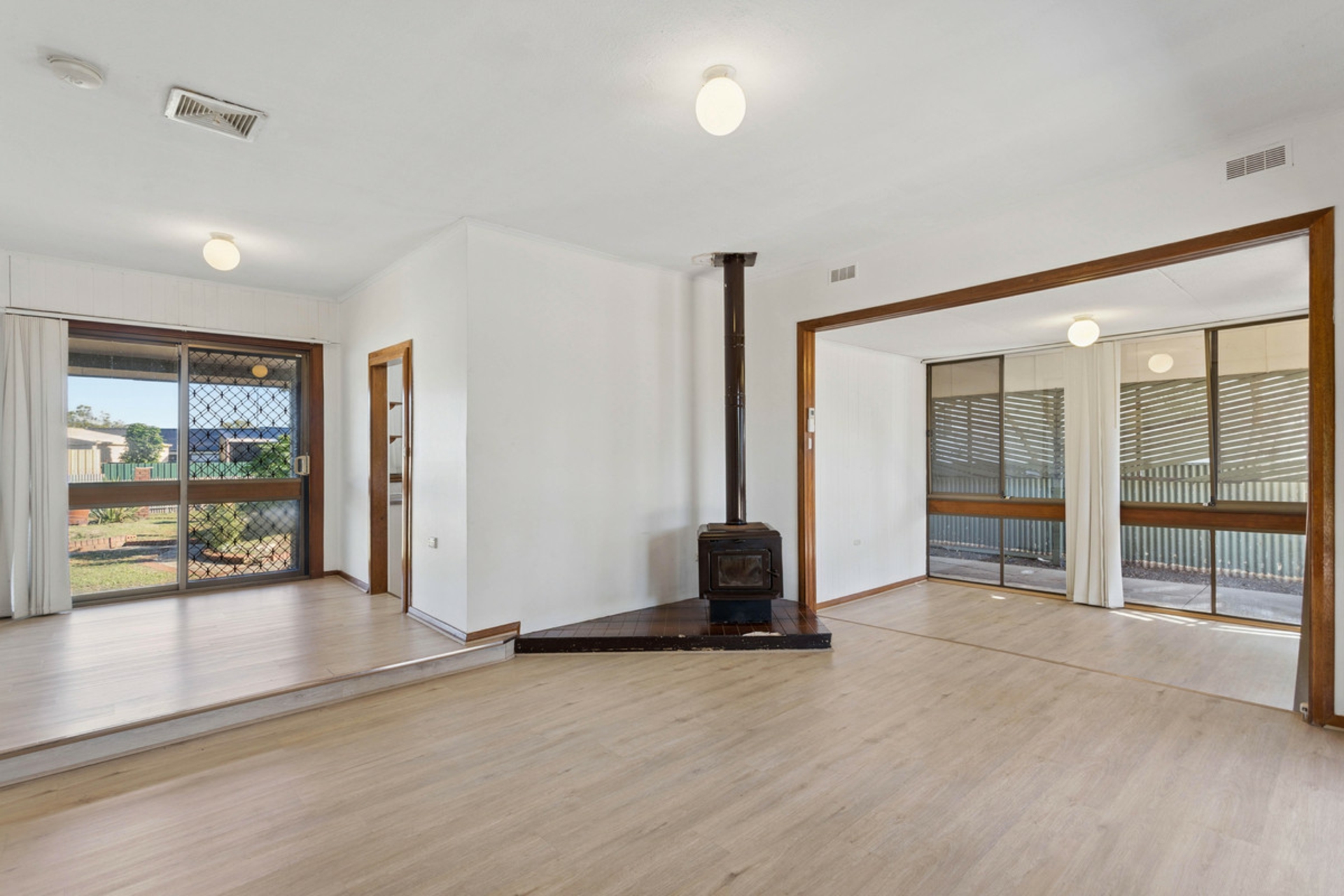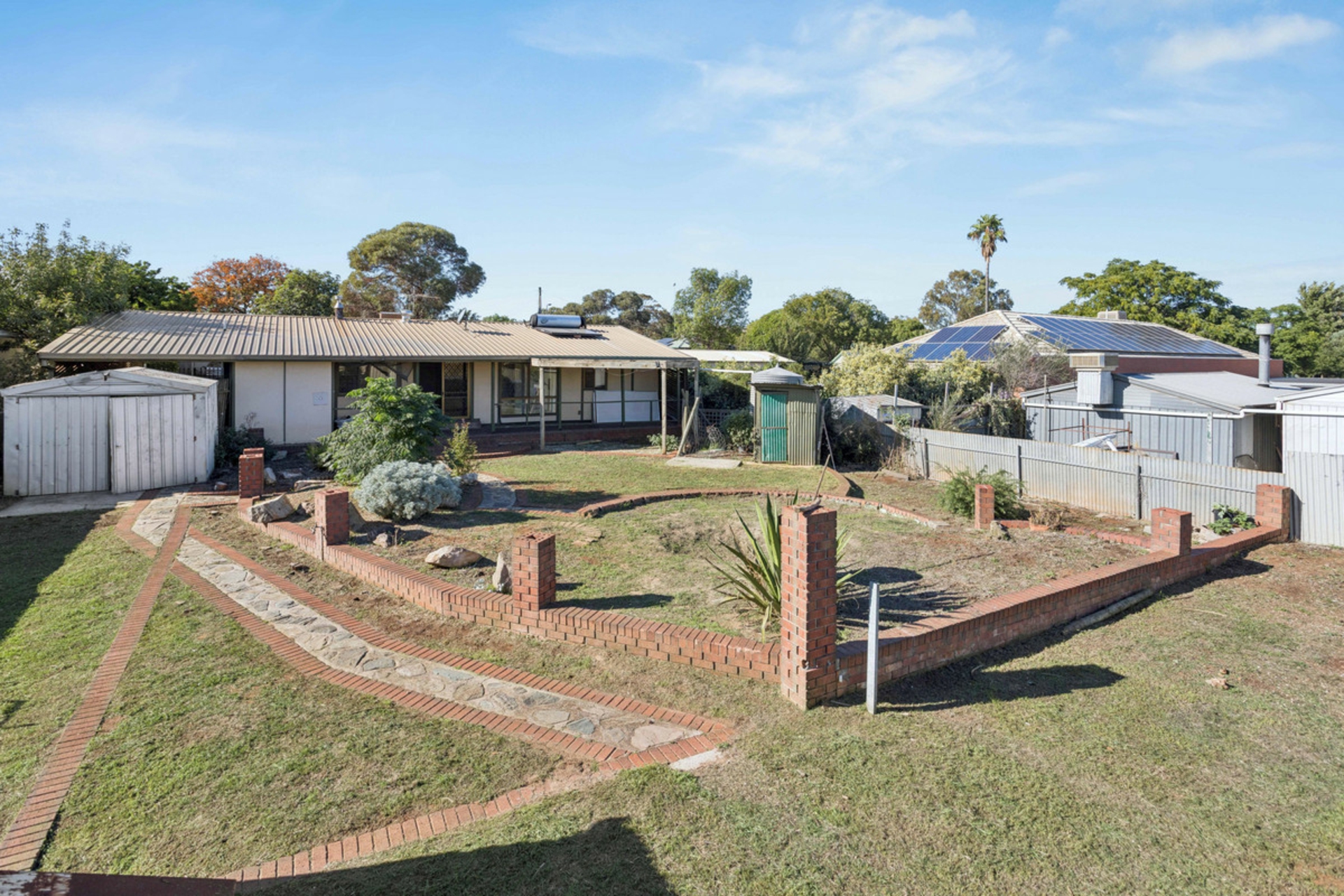 The home offers a practical and functional layout suited to comfortable everyday living. A light filled living room features a wall unit air conditioner and fireplace, providing year round comfort. Outside, the expansive backyard includes a veranda, multiple sheds and a rainwater tank, offering plenty of space for storage, hobbies or outdoor enjoyment.