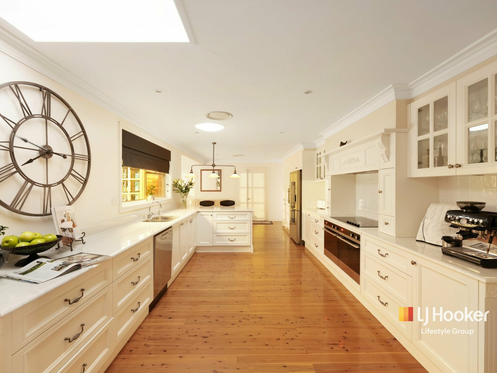 - Grand French provincial kitchen with stone benchtops, stainless steel appliances, the centerpiece of the home and a timeless design
