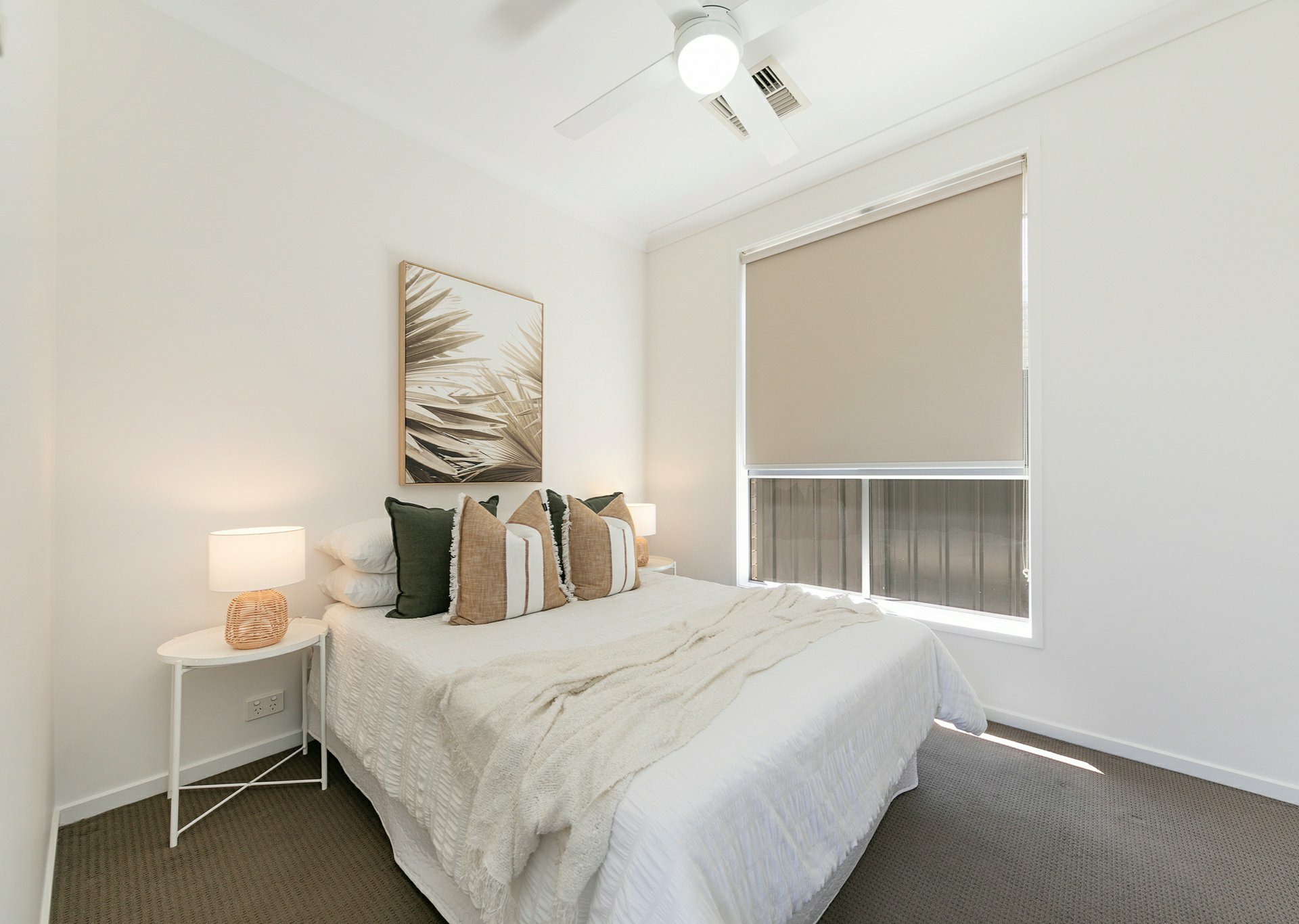 The spacious master bedroom provides a peaceful retreat with a walk-through robe and ensuite. The additional bedrooms are versatile and well-sized with built in robes and ceiling fans. A centrally located family bathroom, separate WC, and built-in linen cupboard add convenience for everyday living.