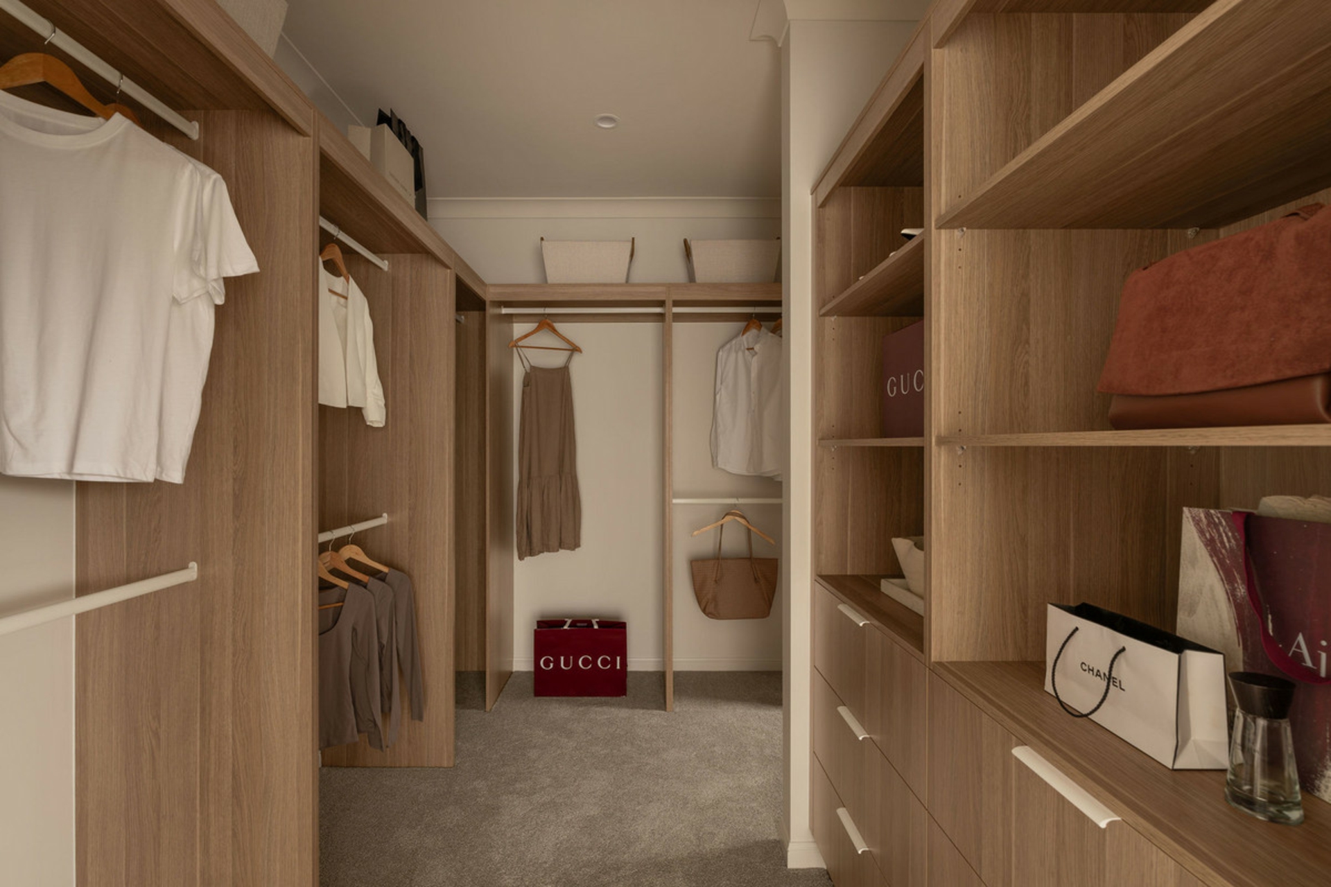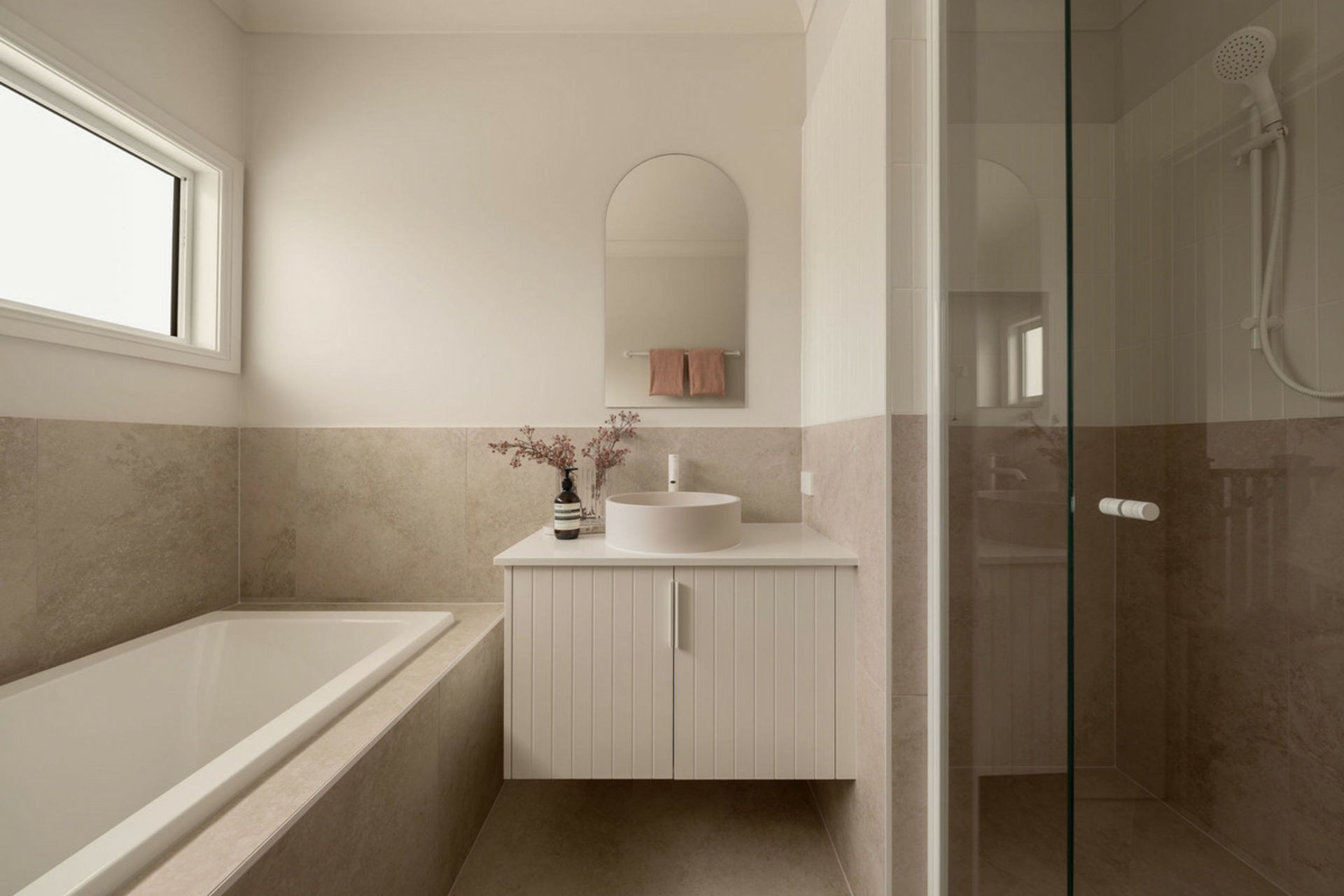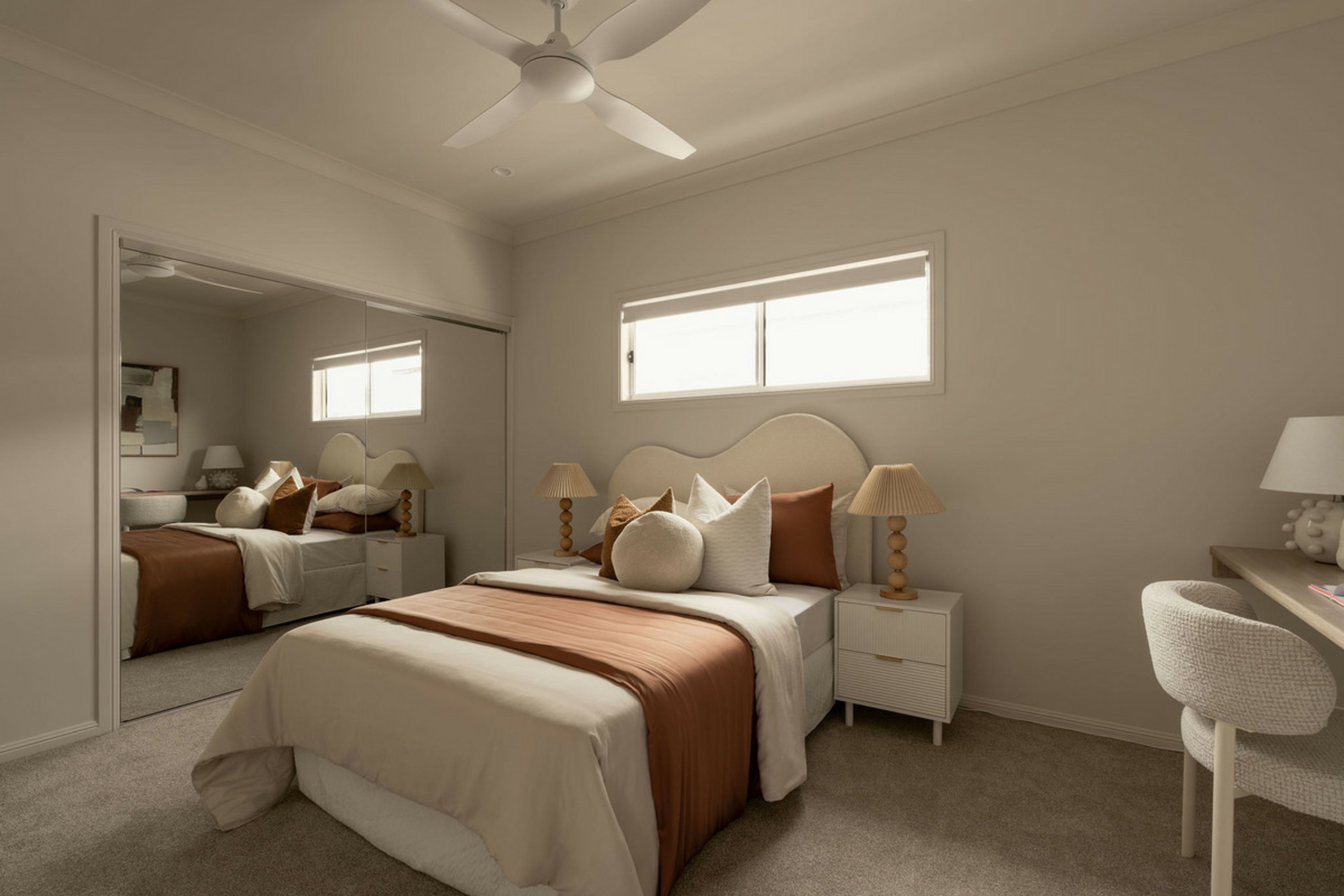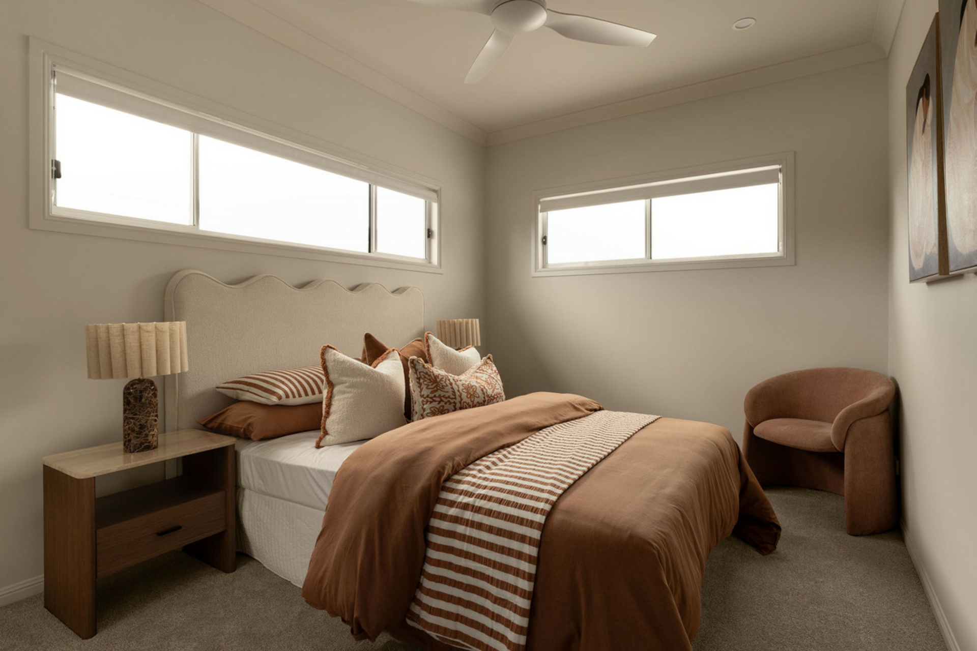 • Ensuite complete with stone benchtop and shower shelf, fluted glass, double shower, and double vanity.