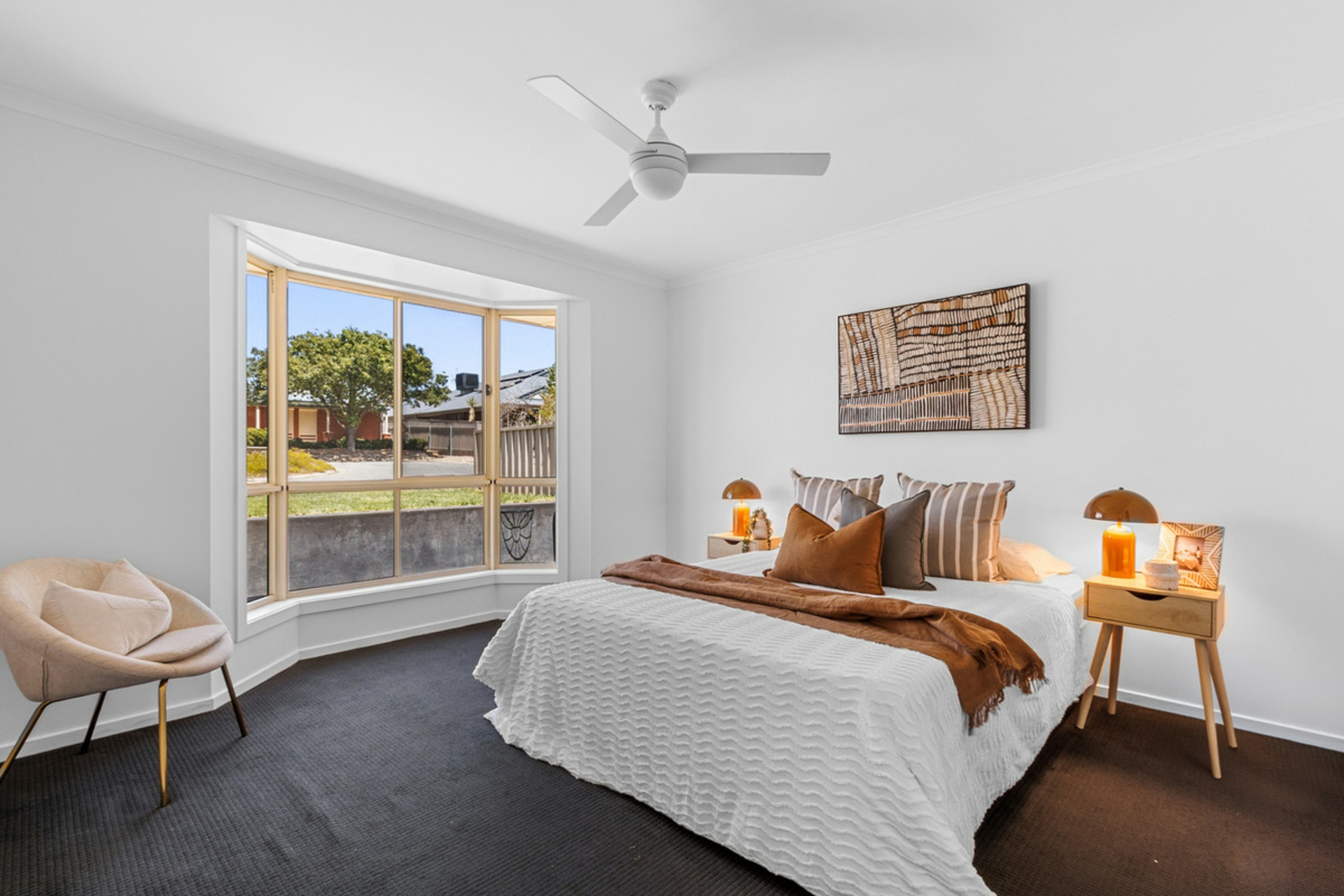 • Spacious main bedroom complete with charming bay window, ceiling fan, private ensuite and walk-in robe.