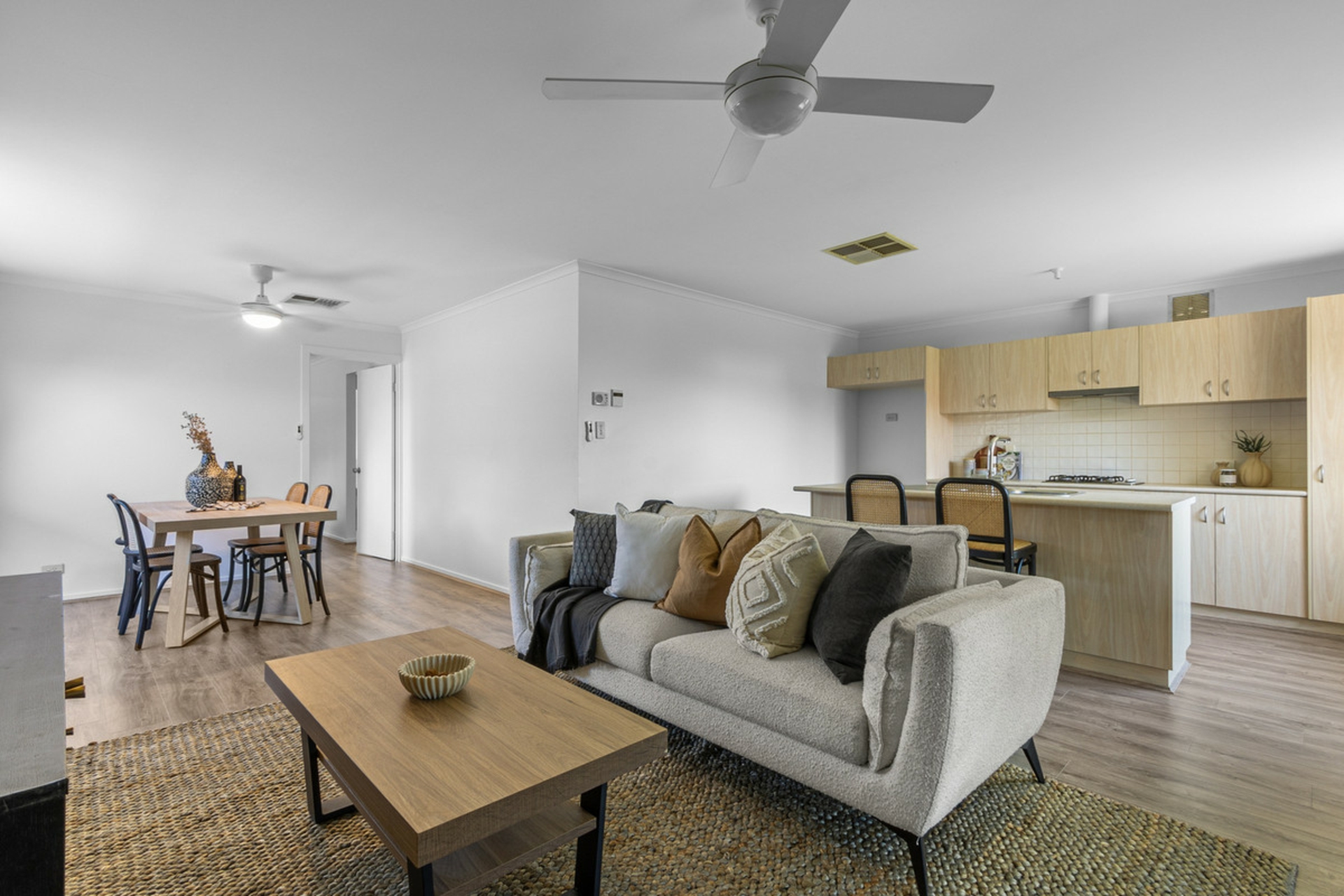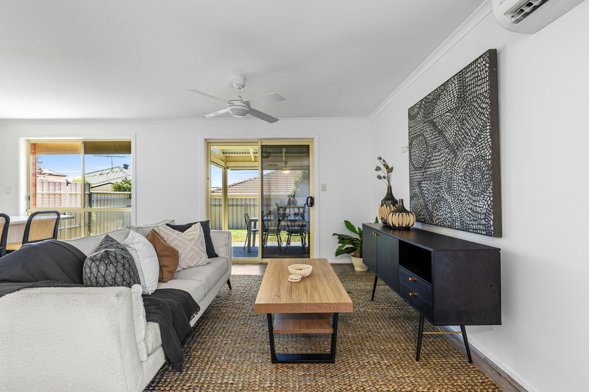 • Light-filled open plan living and meals area with ceiling fan for year-round comfort.