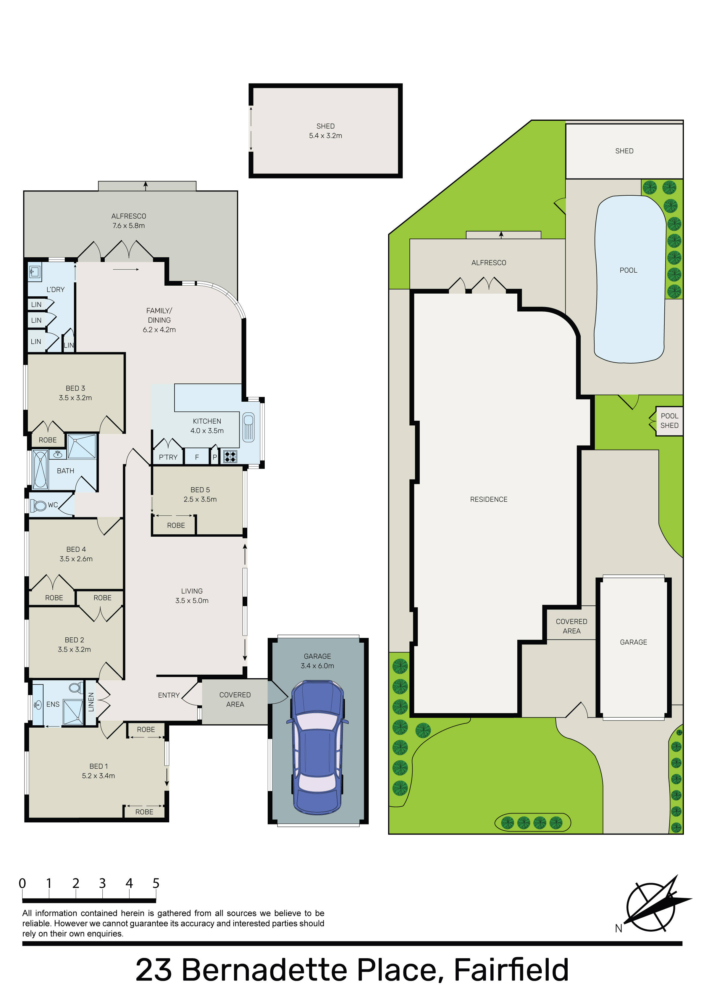 Inside, the home features five bedrooms, all complete with built-in wardrobes.