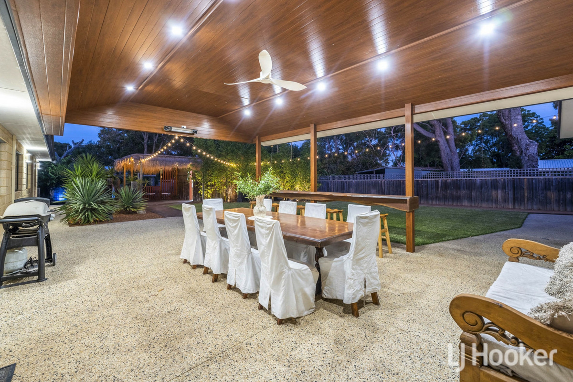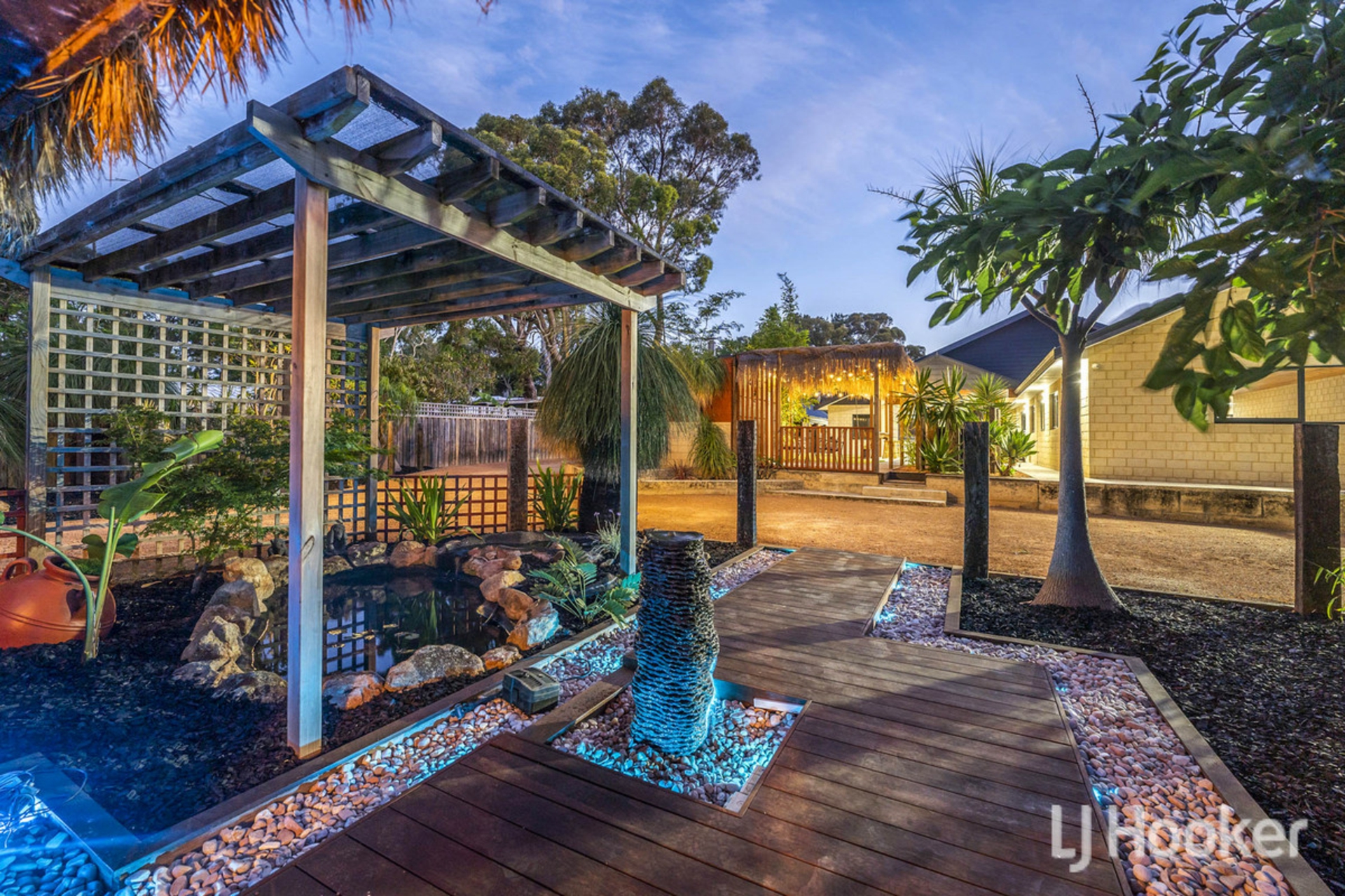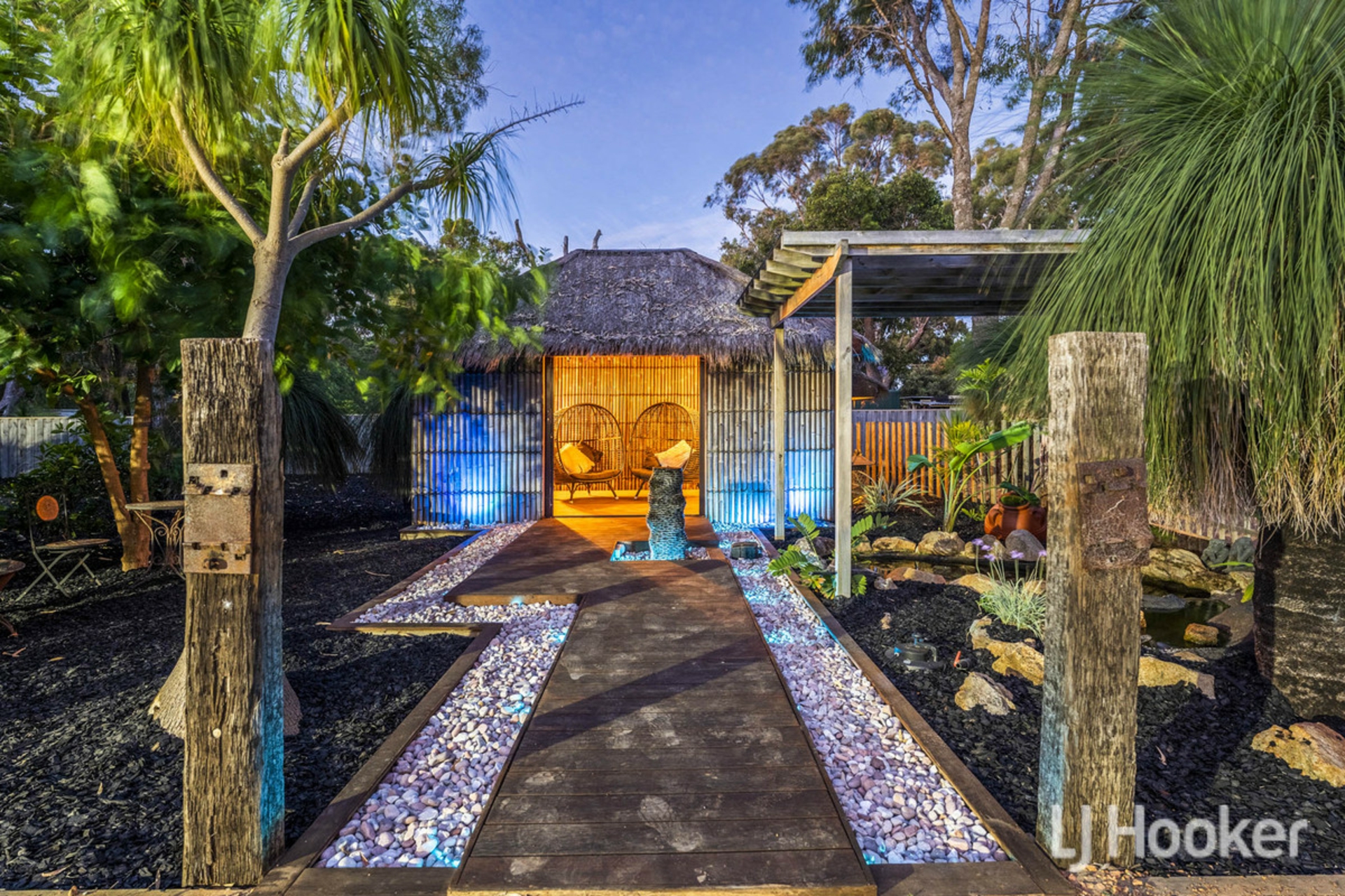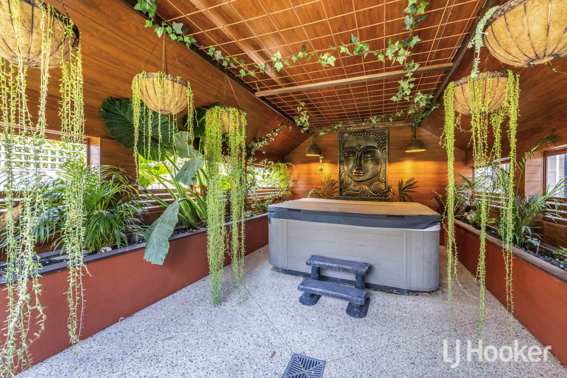 The backyard is a private sanctuary/retreat & resort style featuring a beautifully established Japanese garden featuring a dedicated tranquil wellness zone under a thatch roof creating peaceful pockets for reflection, relaxation, or outdoor dining. Completing the experience is an impressive enclosed undercover spa with hot & cold shower and a dedicated wellness gazebo, providing your own retreat-style escape at home.