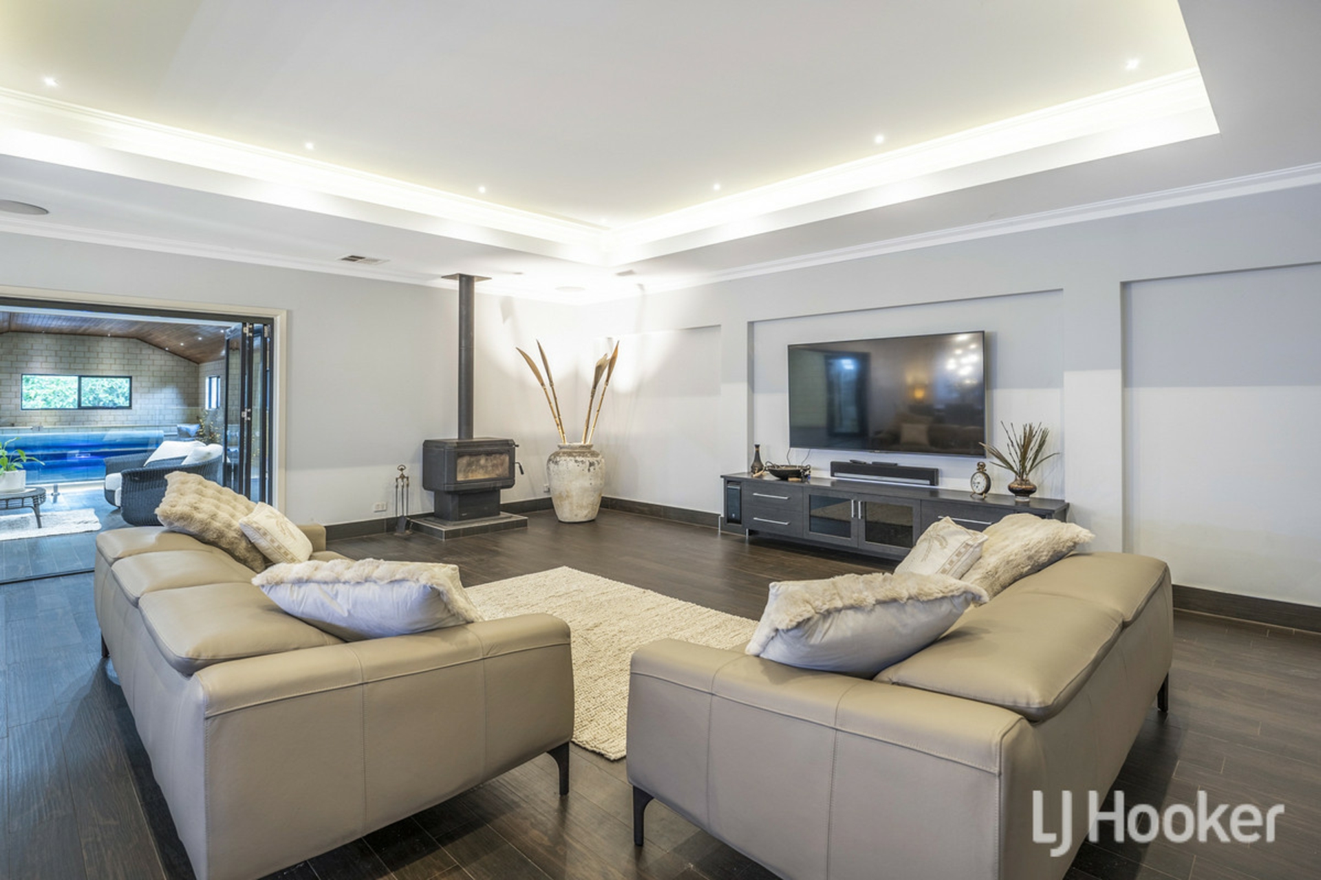 Set on a generous 4000m2 block, the residence boasts five spacious bedrooms, a dedicated theatre room, MasterChef kitchen, huge indoor salt pool, gym, sauna, games room, outdoor kitchen & pizza oven.