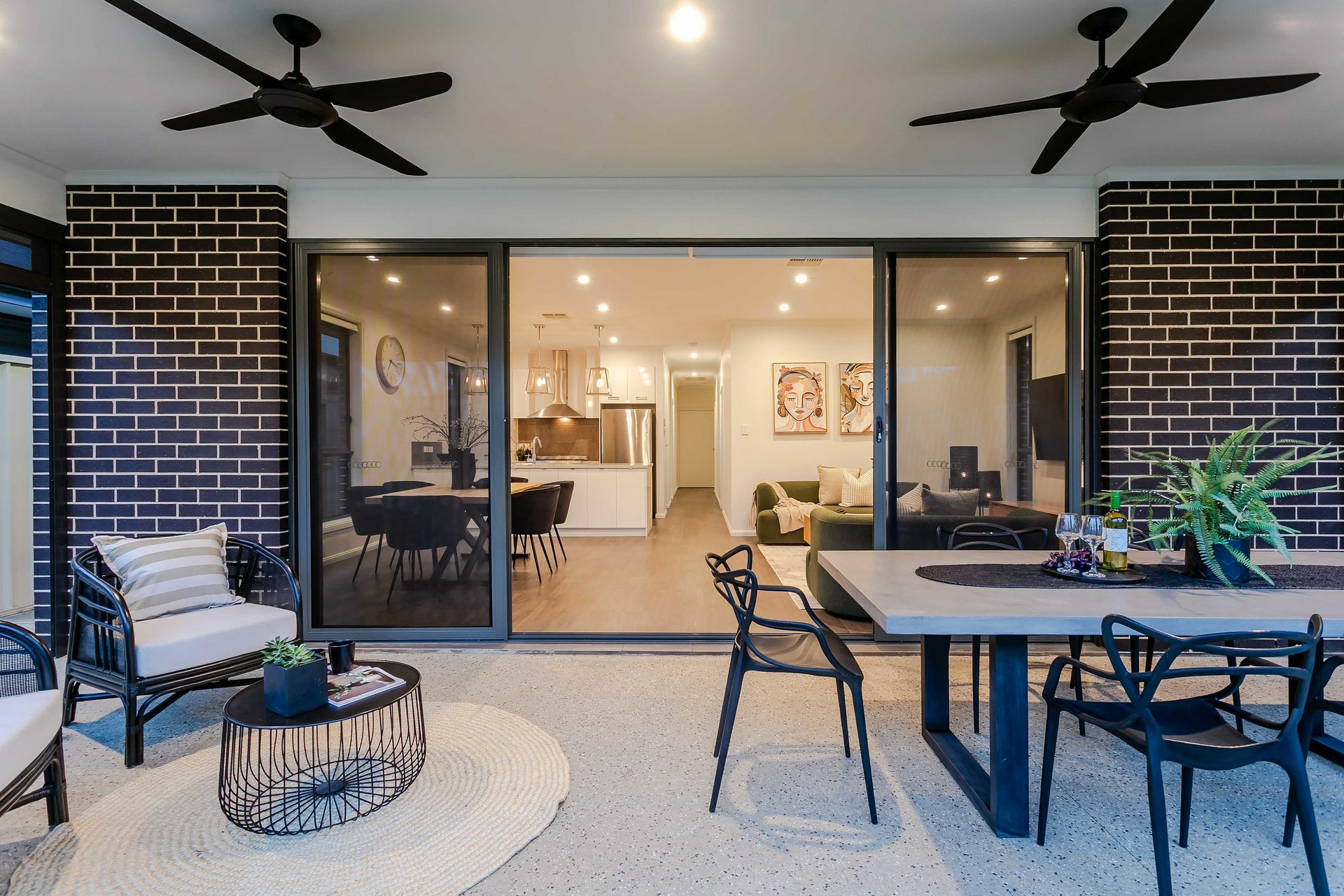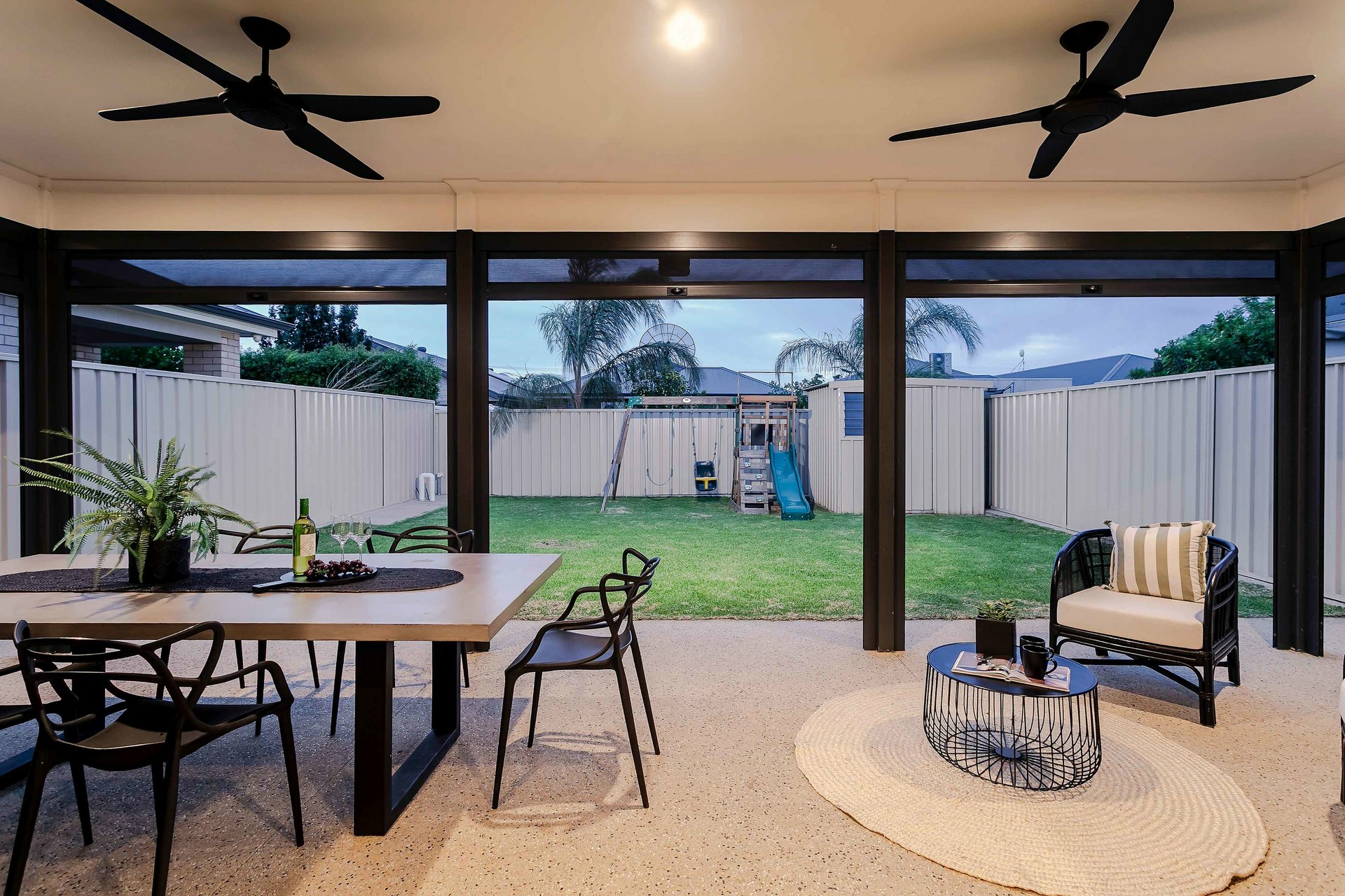 - Covered alfresco with outdoor blinds and ceiling fans