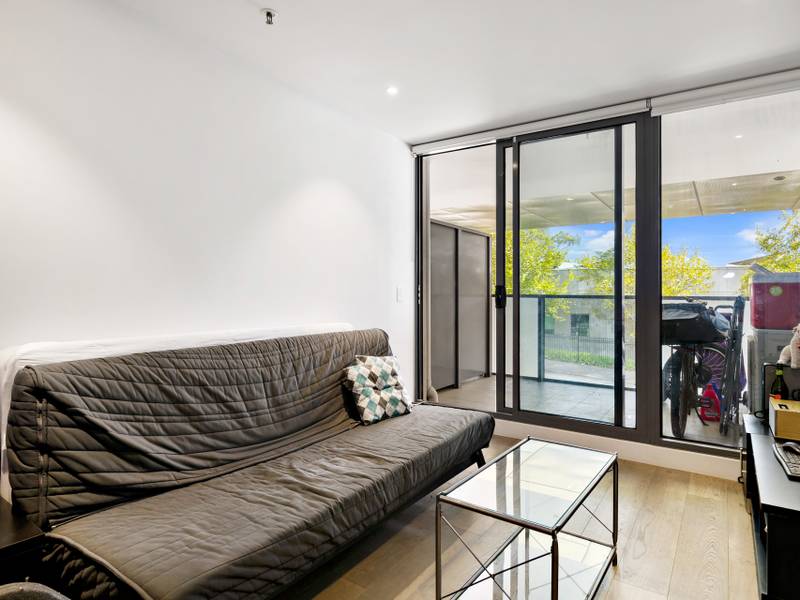 This modern apartment offers open plan living with stunning timber floorboards and large glass windows leading to the covered outdoor balcony. A sparkling modernised bathroom is central to the apartment, along with laundry space for convenience.