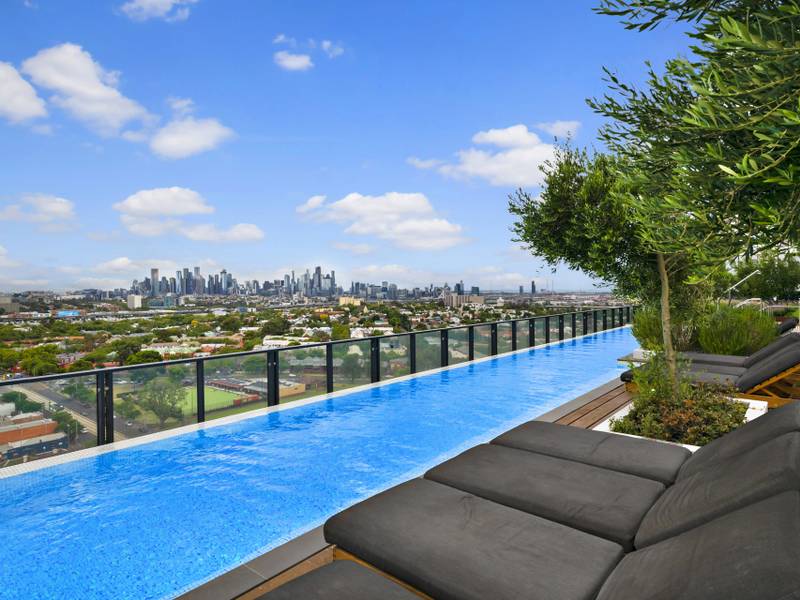 Amenities include a spacious gym, dining/bbq areas and a luxurious rooftop infinity pool overlooking breathe taking city skyline views along with lounge chairs for relaxation.