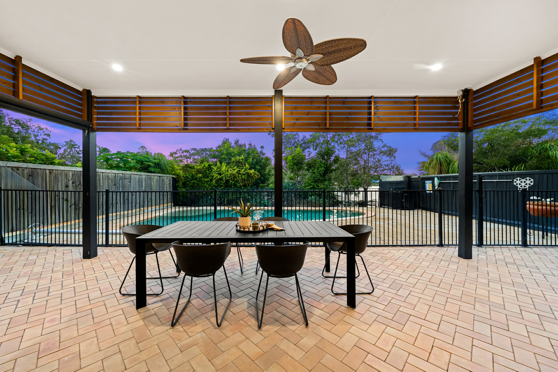 The low-maintenance yard is ideal for busy families, complete with an inground pool and space to relax without the upkeep. A sufficient number of solar panels to help offset your electricity usage and is battery enabled for future install.
