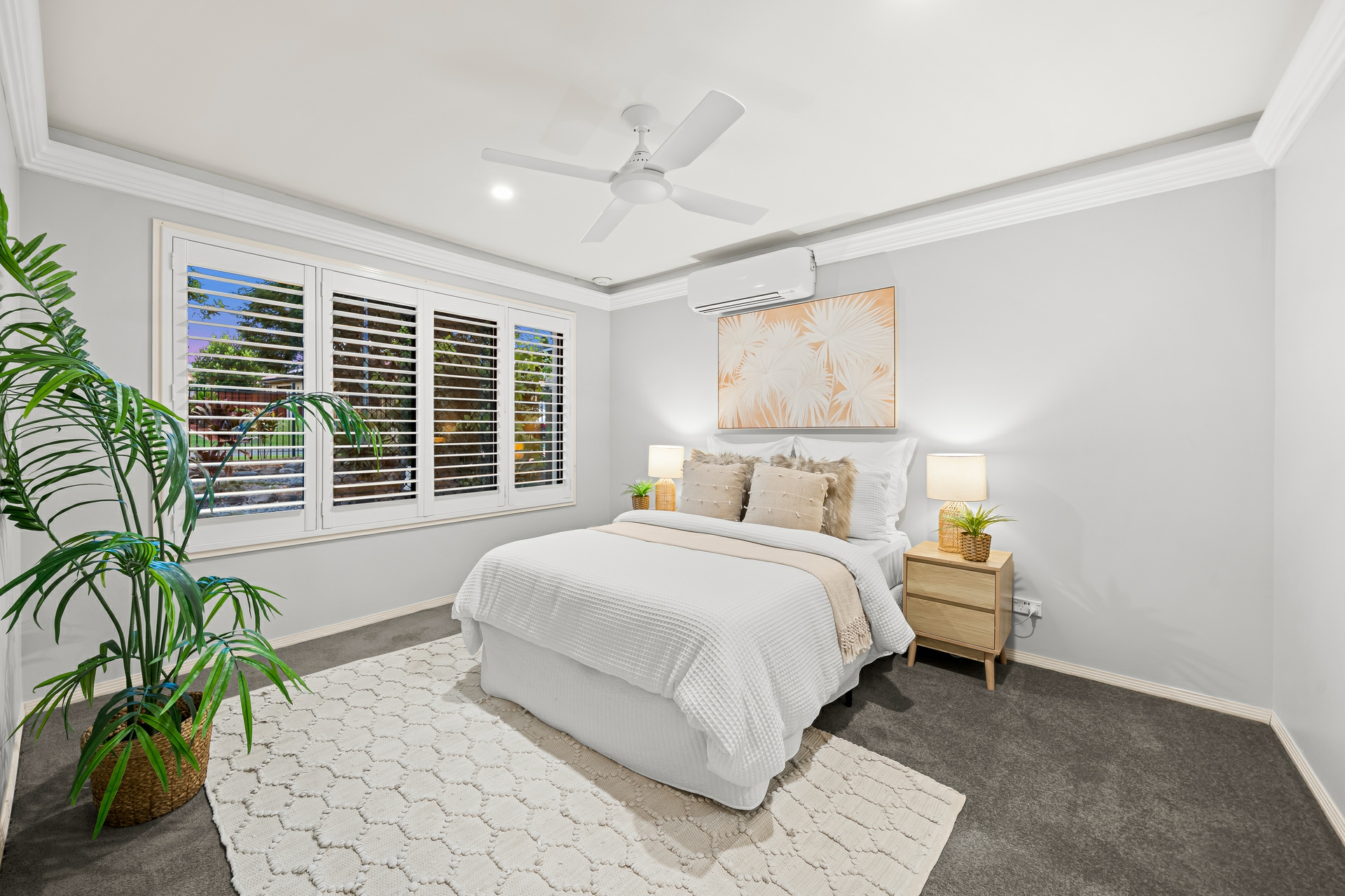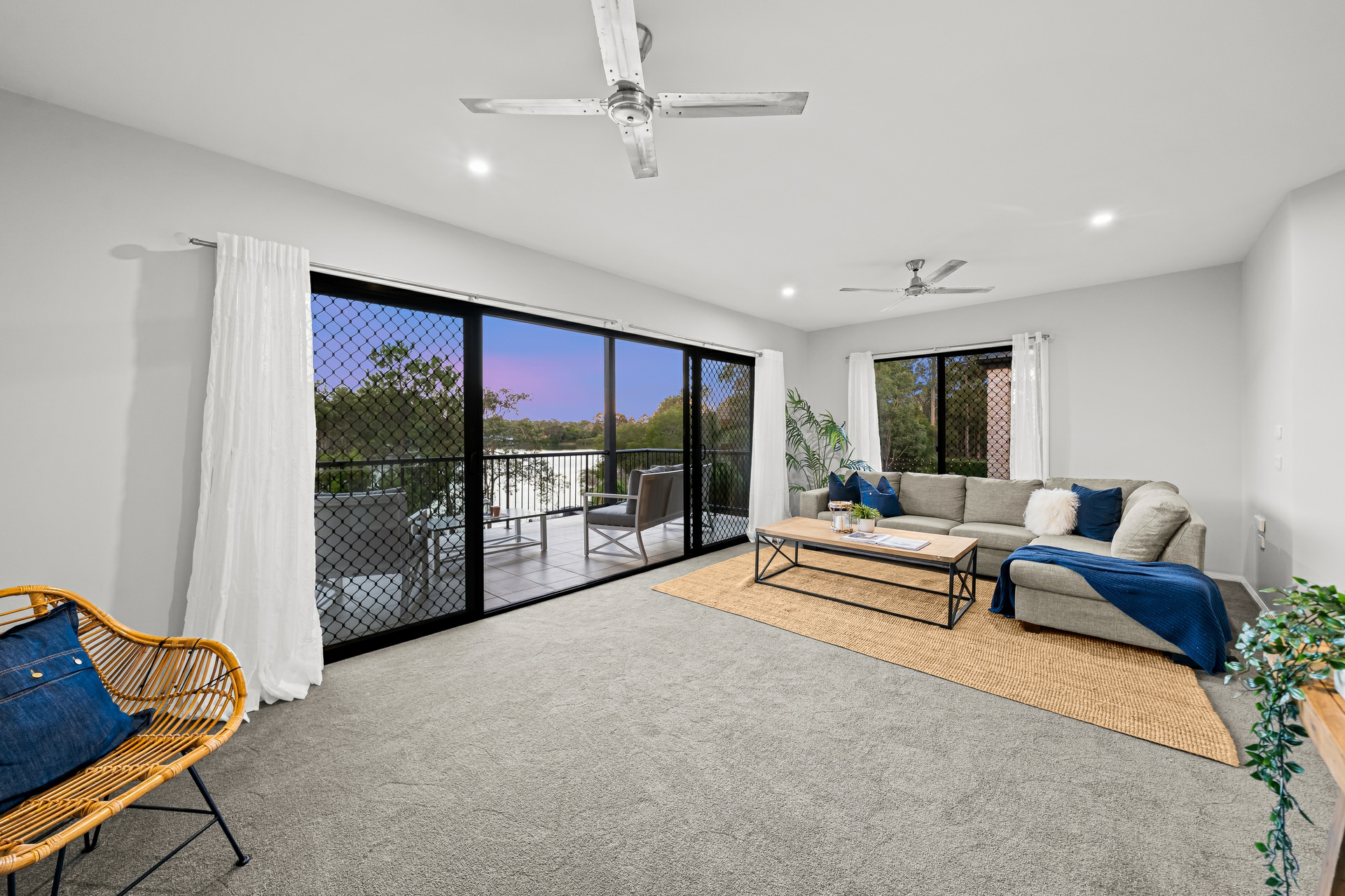 Upstairs, you'll find two additional well-proportioned bedrooms, one with convenient two-way access to the main bathroom. A generous family living area provides flexibility, with ample space to partition off into a home office setup if required. Step out onto the upstairs balcony and take in elevated views across the lake.