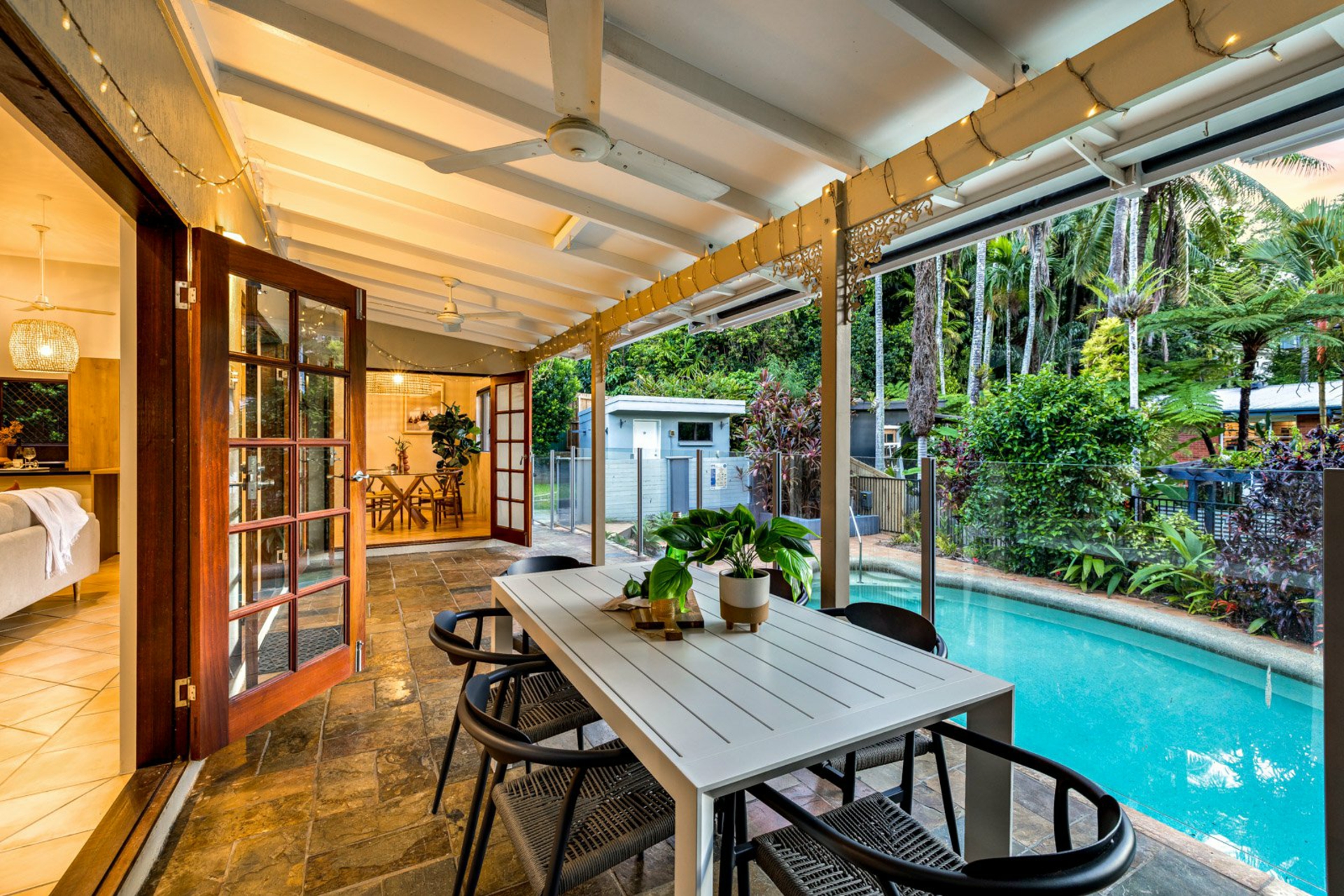Positioned at the end of a leafy cul-de-sac and set on a generous 830sqm allotment, this residence offers spacious open plan living space with high ceilings that extends seamlessly to outdoor living adjacent to an in ground pool - perfect for relaxing or entertaining all year round. Elegant French doors throughout enhance the indoor–outdoor connection and tropical feel.