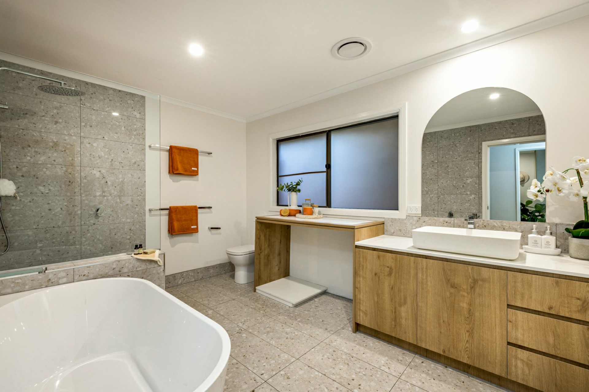 All bedrooms are generous in size. The master bedroom suite features a walk-in robe and private ensuite. The three additional bedrooms include one with its own ensuite and two with private access to the side verandah - ideal for guests or growing families.