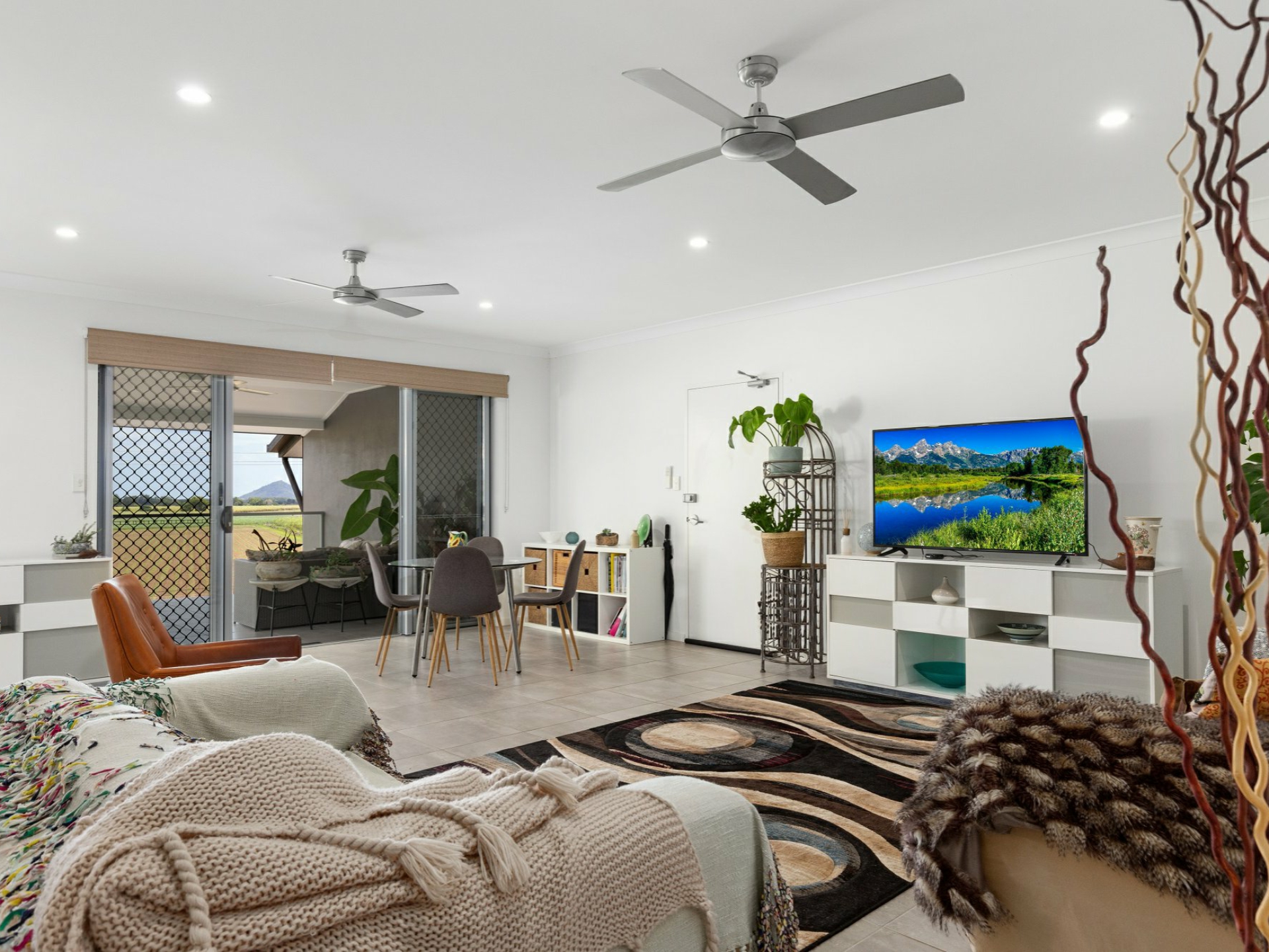 "Freshwater Vues" - Neutral tones, clean lines, space and views are showcased throughout this top floor apartment and complimented with stunning panoramic views of the cane fields of the Barron River Delta.