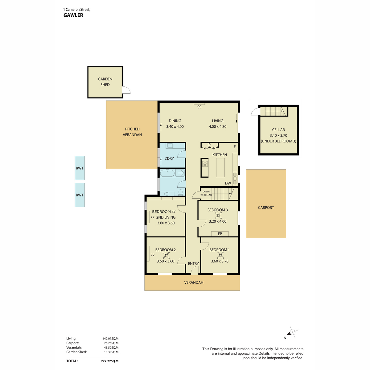 Positioned within the original township on Cameron Street, just off Cowan Street, the home seamlessly blends period charm with modern comfort, offering approximately 142 sqm (approx.) of internal living space and 227sqm with external set on a generous 539 sqm allotment.