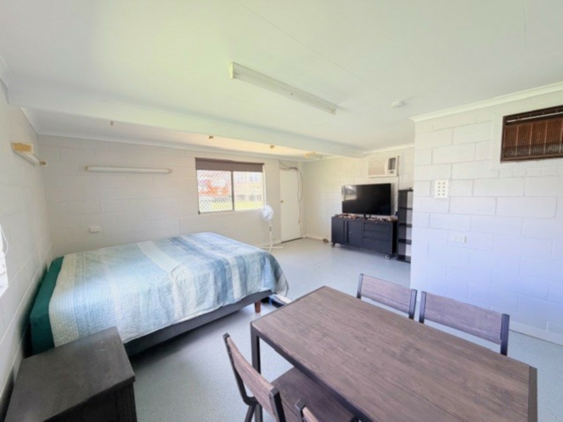 •Airconditioned open plan bedroom and living area with TV & unit