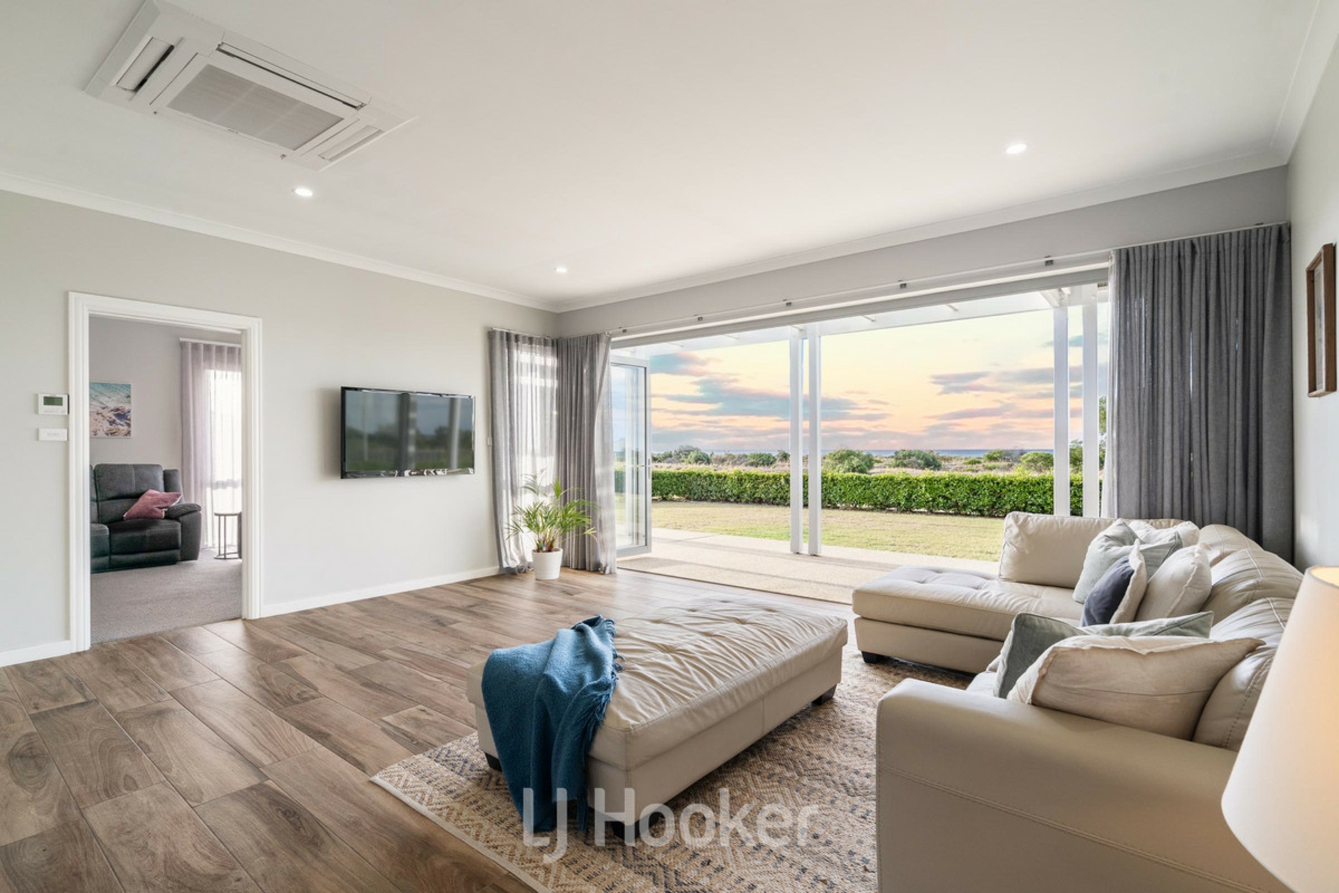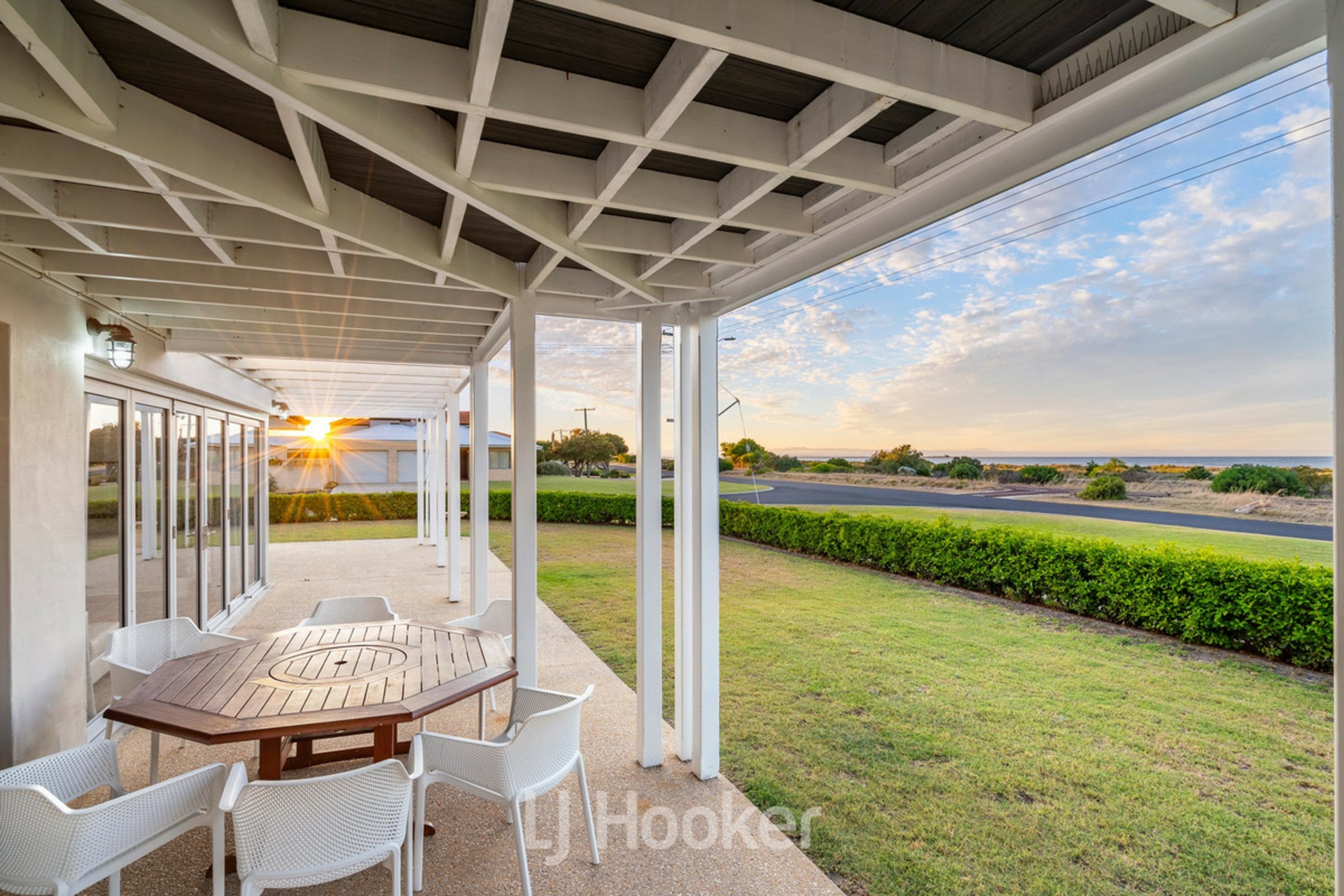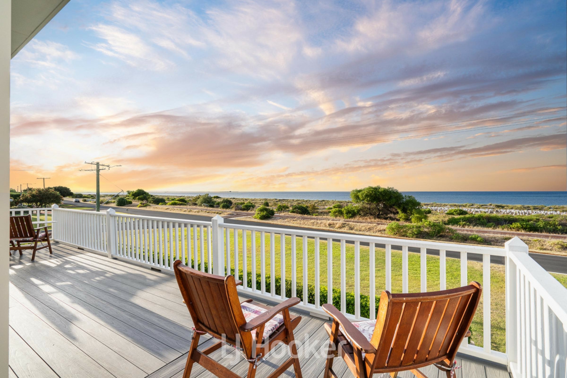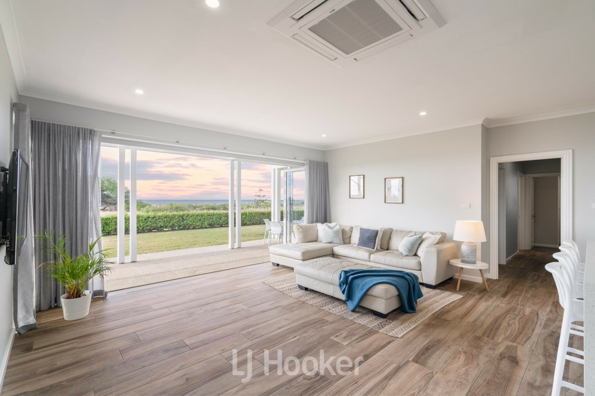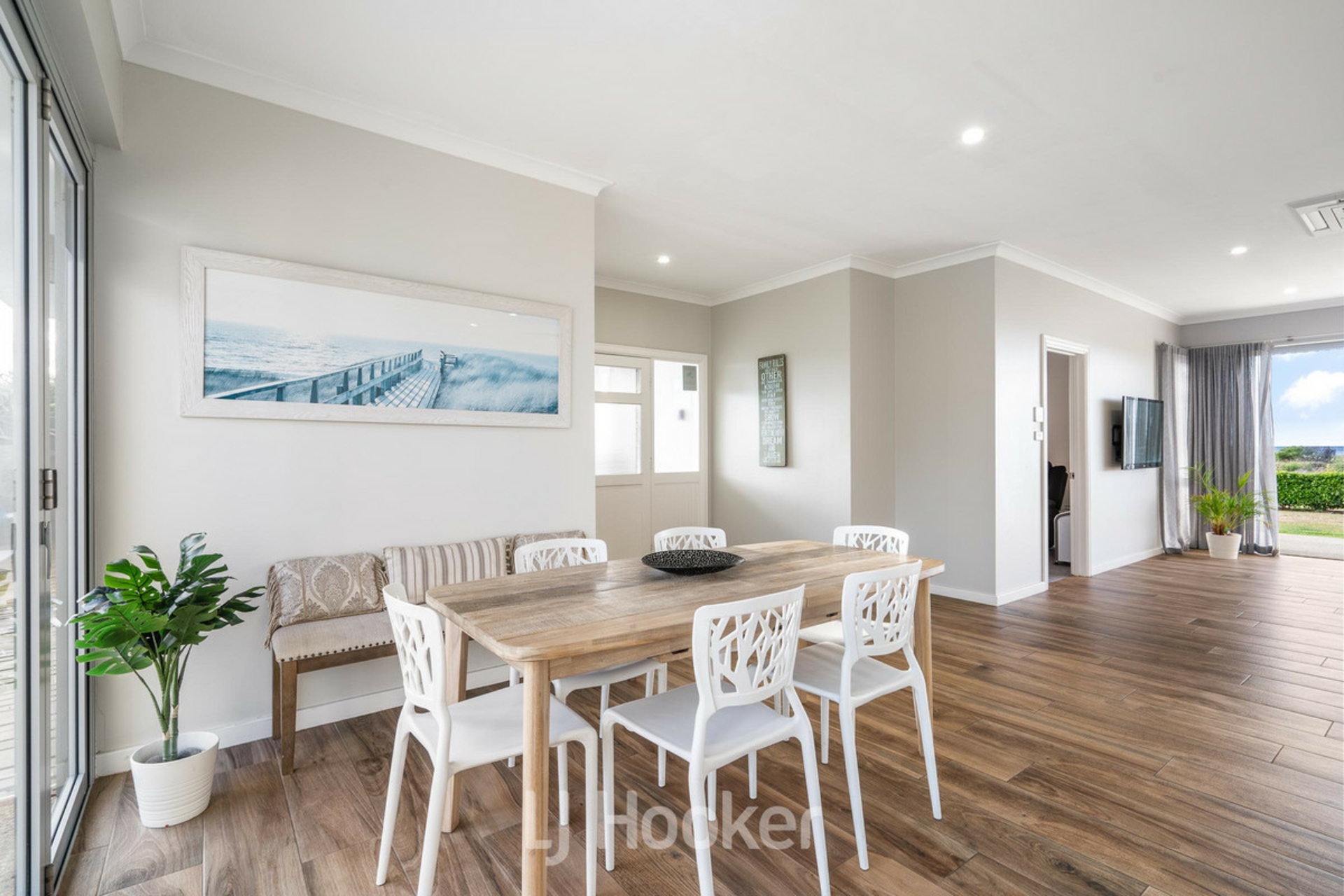 This coastal-style residence offers an exceptional lifestyle opportunity with breathtaking 180-degree views over Geographe Bay. Positioned on a prized north-facing corner lot, the home captures natural light throughout and enjoys uninterrupted vistas of the iconic Busselton Jetty from multiple rooms.