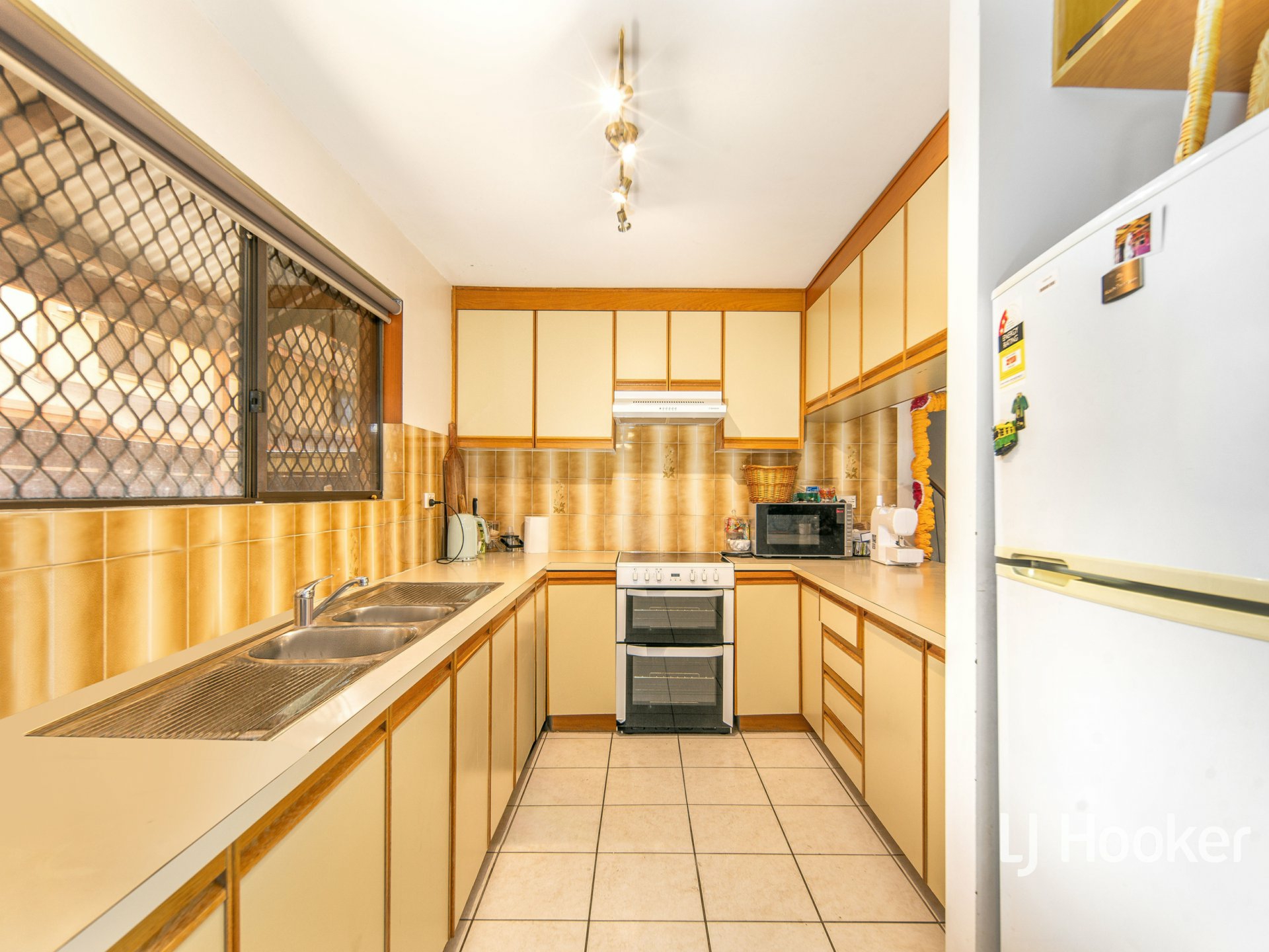Nestled within a peaceful, tree-lined complex, the home features a unique kitchen with a newly installed electric oven and hotplates, complemented by a spacious, ambient open-plan living and dining area that opens directly to a private, landscaped courtyard.