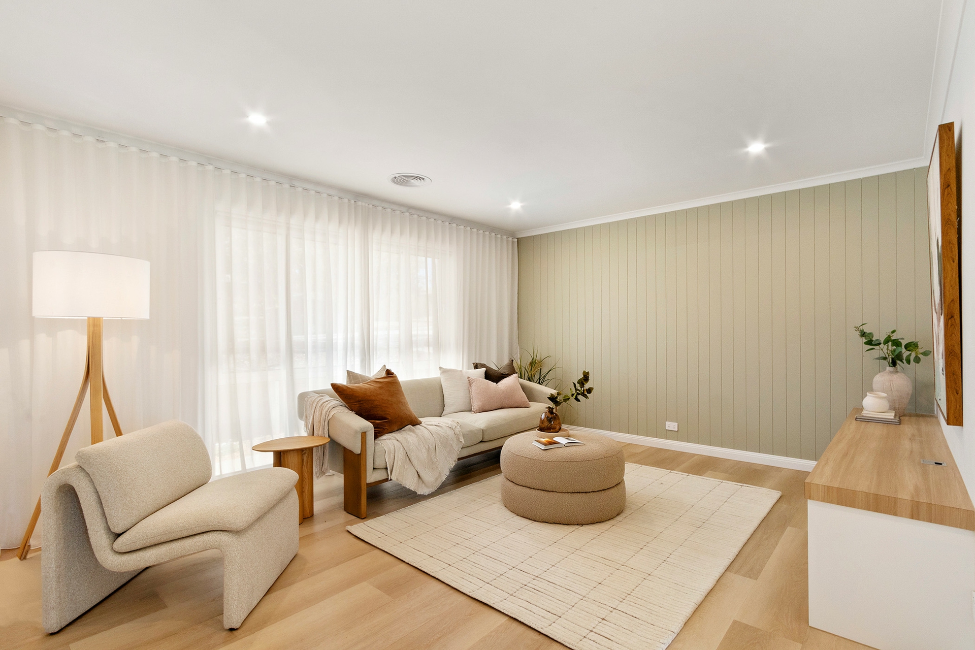•Light-filled open-plan lounge, living and dining with new floating floors, fresh paint, custom blinds