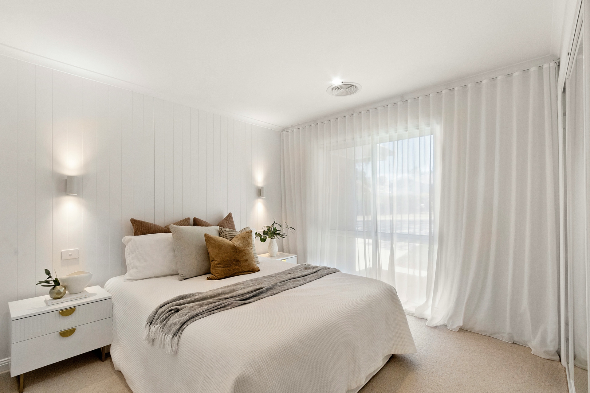 •Three additional bedrooms with built-in robes, floor-to-ceiling sheers and custom roller blinds