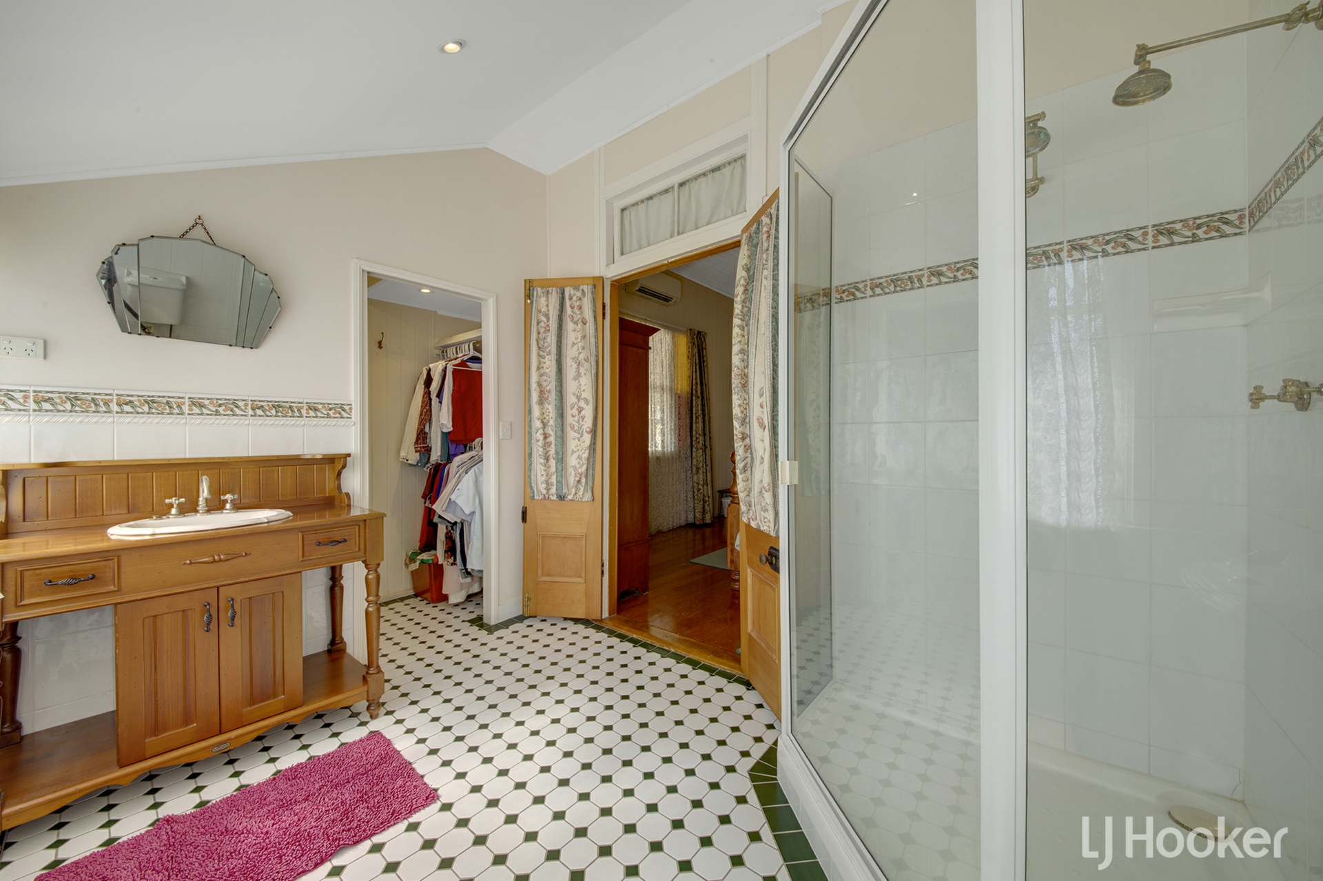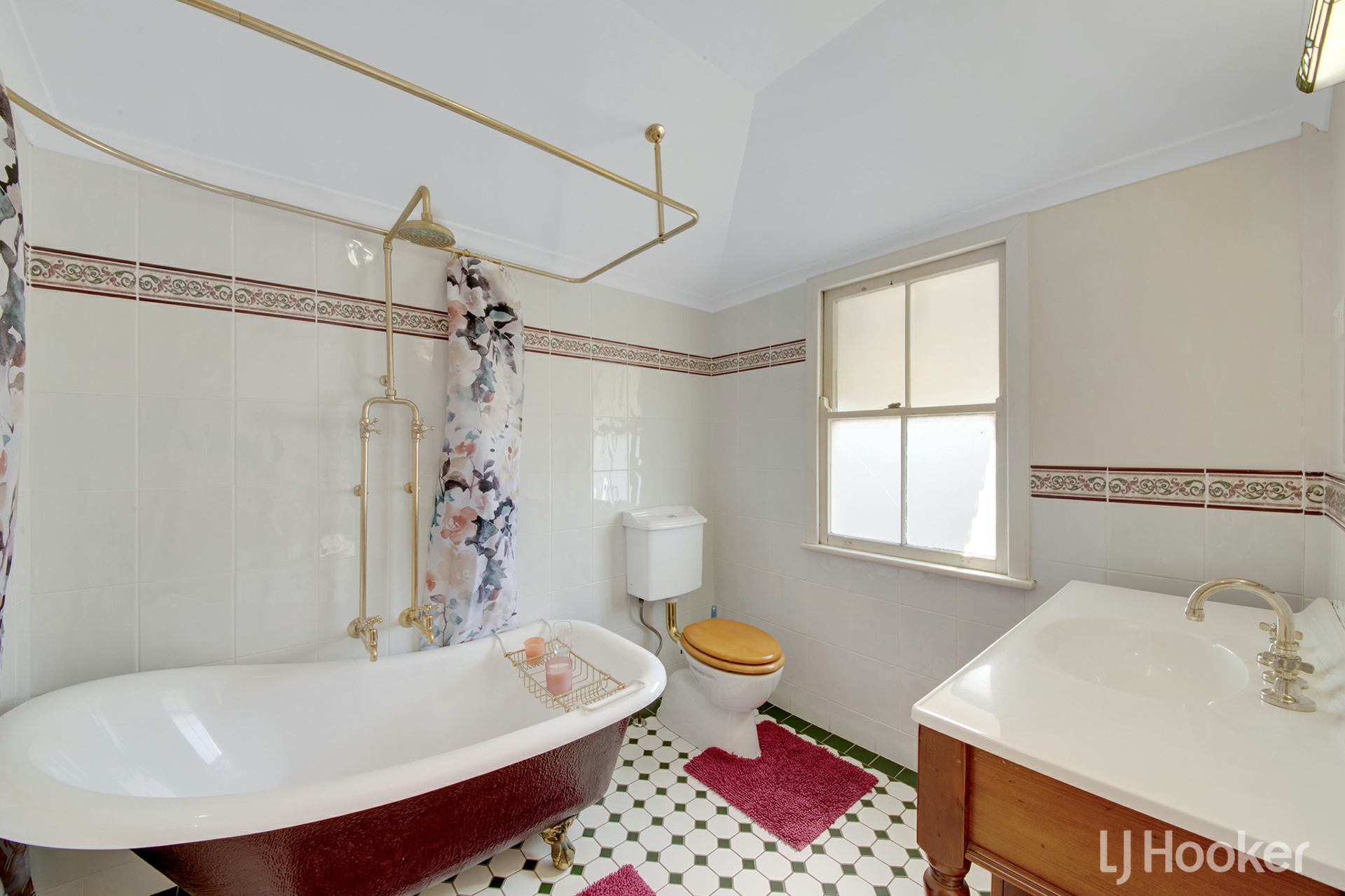 Soaring 10-foot ceilings, polished timber floors, stained glass windows and decorative fretwork create warmth and personality throughout. The expansive living area offers outstanding space for everyday living and entertaining, while French doors open onto the verandah, inviting relaxed indoor-outdoor enjoyment.