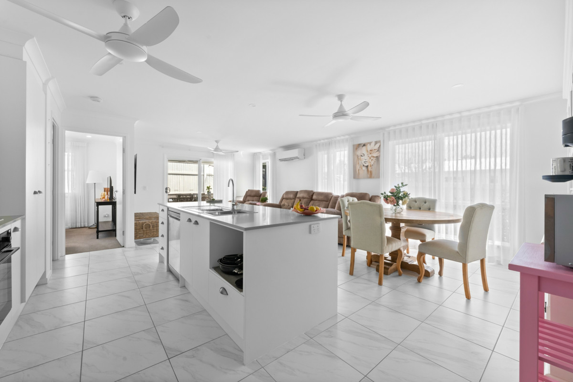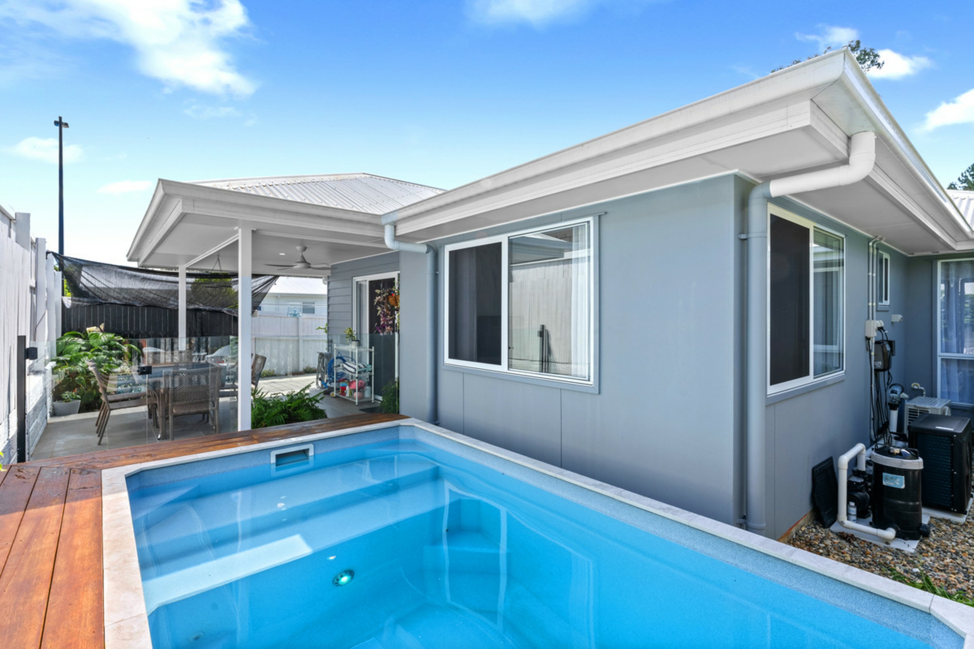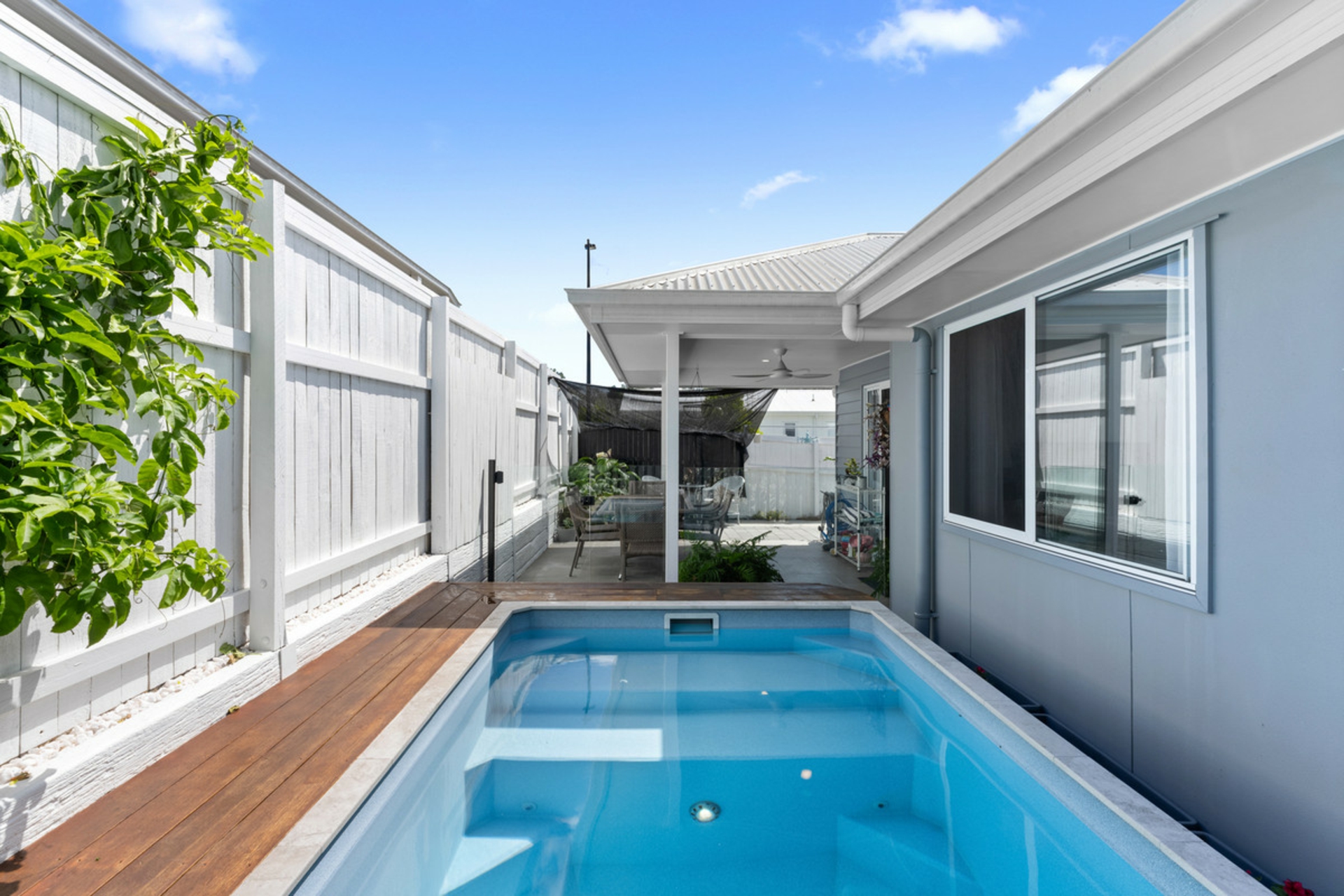 Inside, you'll find three generous bedrooms, two stylish bathrooms and modern finishes throughout. Sheer curtains in every bedroom add a soft, elegant touch, while ceiling fans and split-system air conditioning keep the home comfortable year-round. Outside, the cute white picket fence sets the tone, leading to a private, low-maintenance yard complete with a sparkling plunge pool and undercover entertaining area - perfect for relaxed weekends at home.