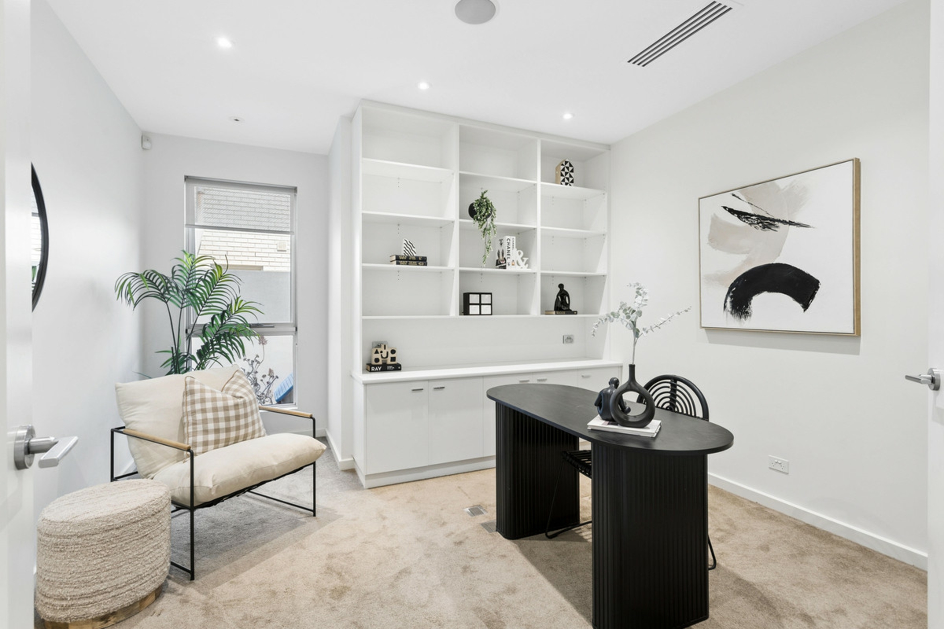 • Bedroom 4 or executive home office with custom built-in cabinetry