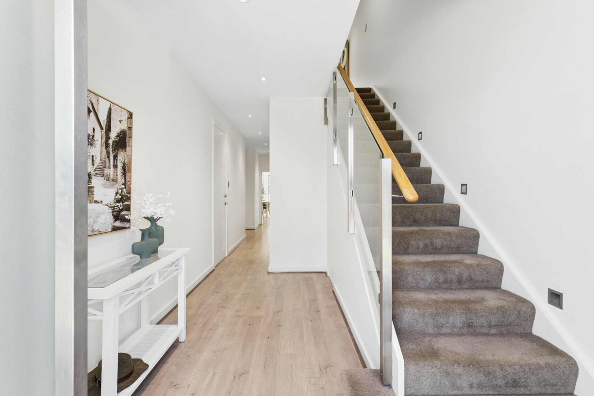 • Glass balustrade enhancing open-plan design and modern architectural aesthetic