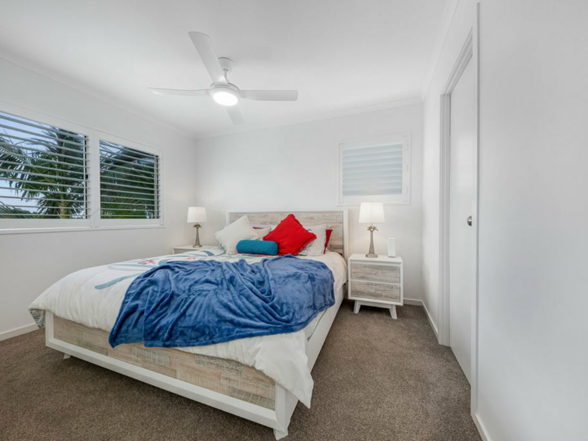 . Two bedrooms, plantation shutters, newly carpeted, ceiling fans,