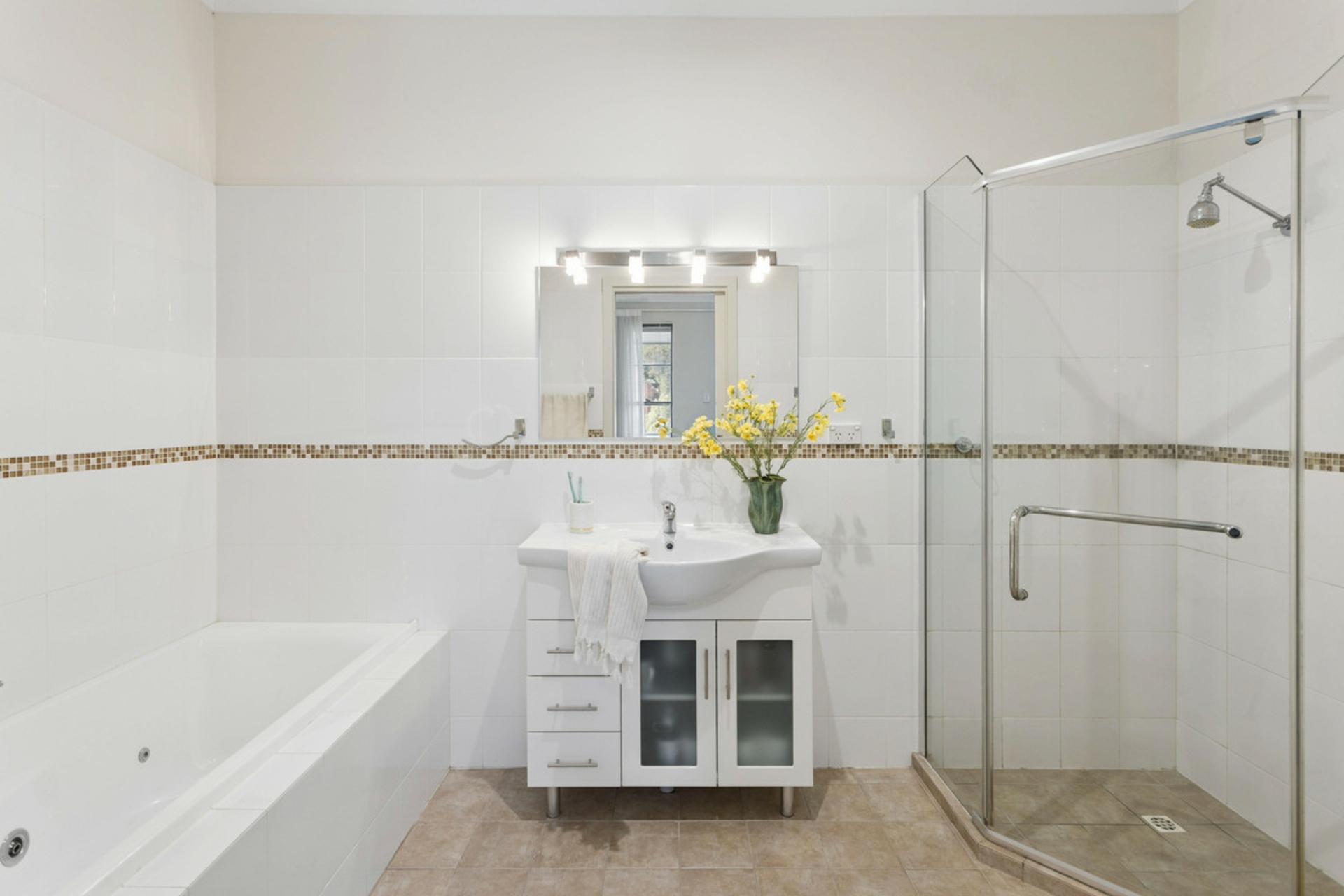 • Three bedrooms, master bedroom with balcony access, walk in robe and ensuite with tub
