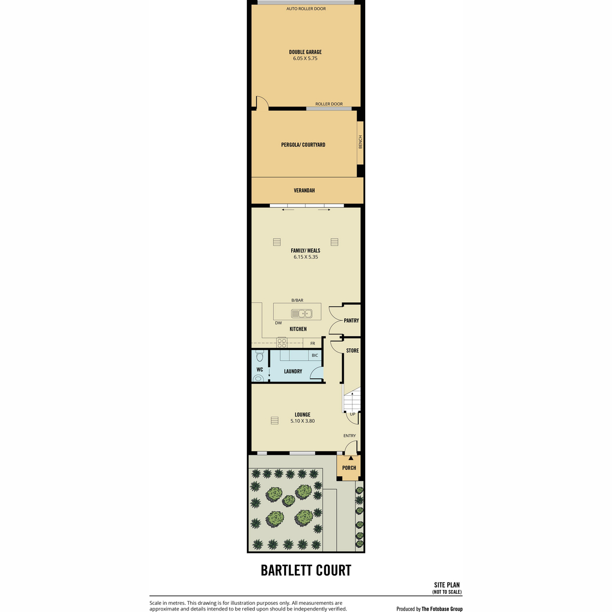 • Double automatic roller door garage with access to courtyard via single manual roller door