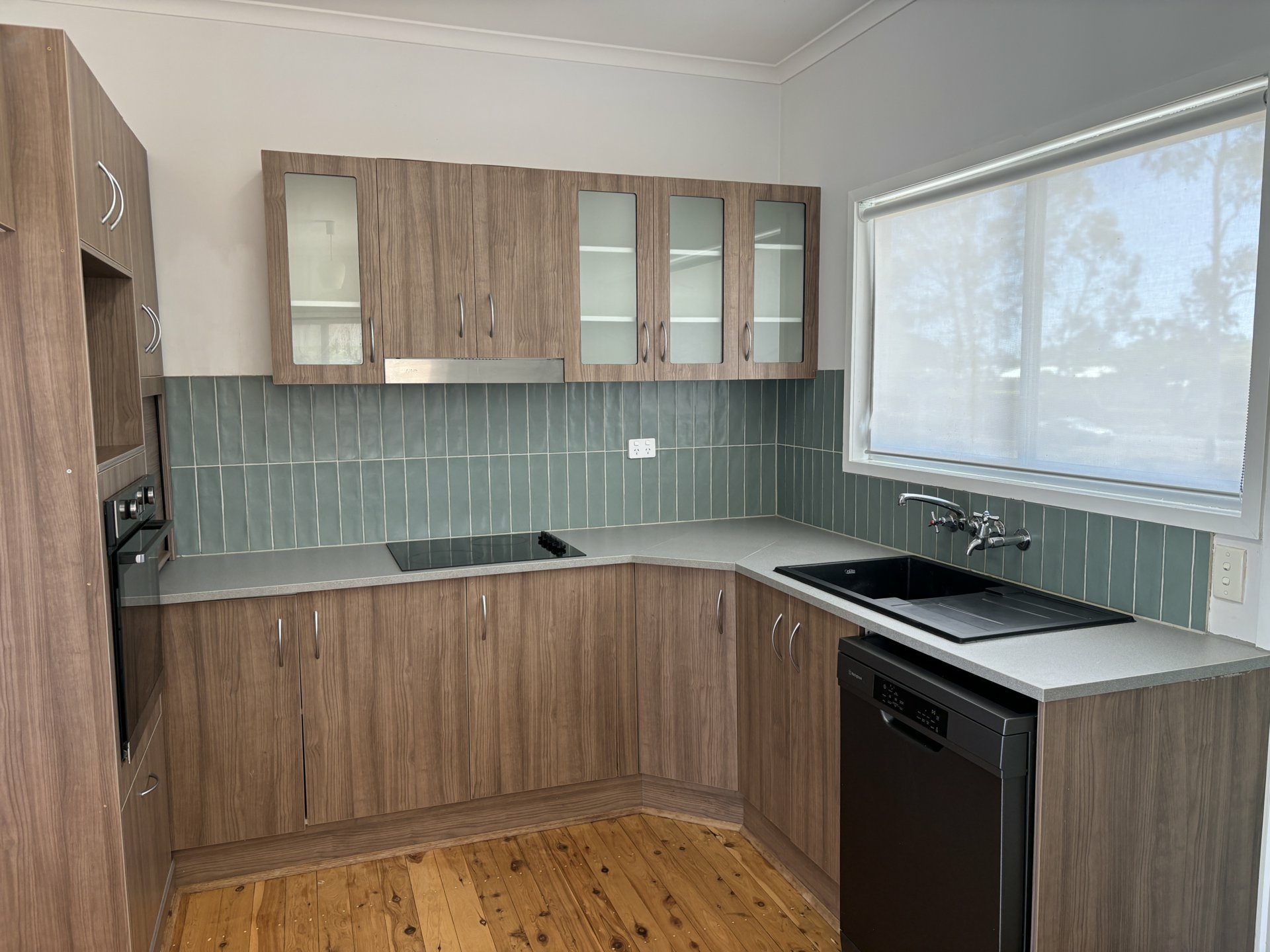 New kitchen featuring electric oven, induction cooktop, dishwasher and plenty of cupboard space.