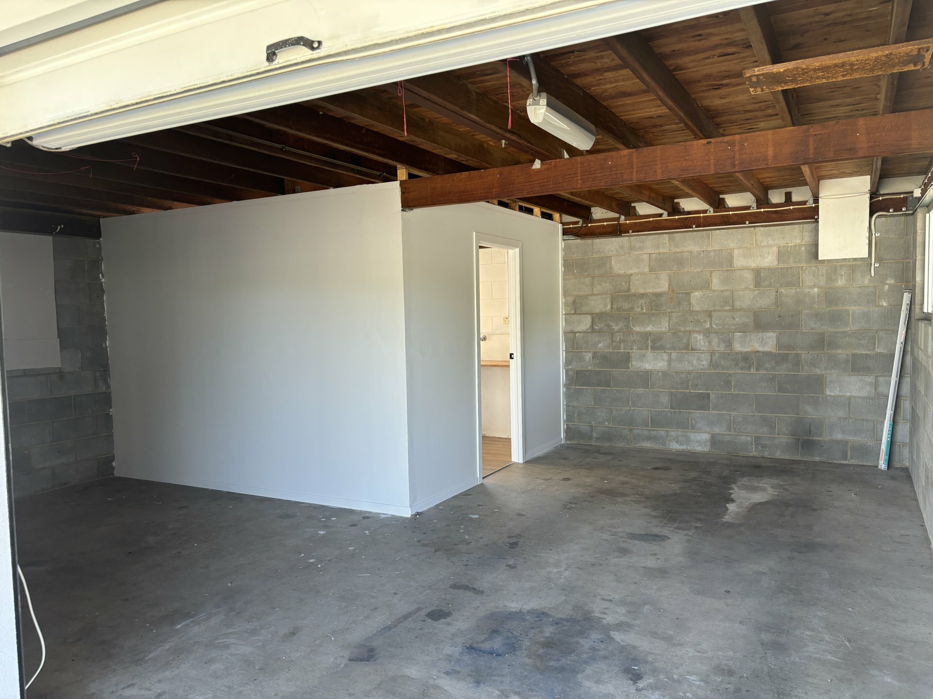 Single lock up garage and workshop area and a single carport for the vehicles.