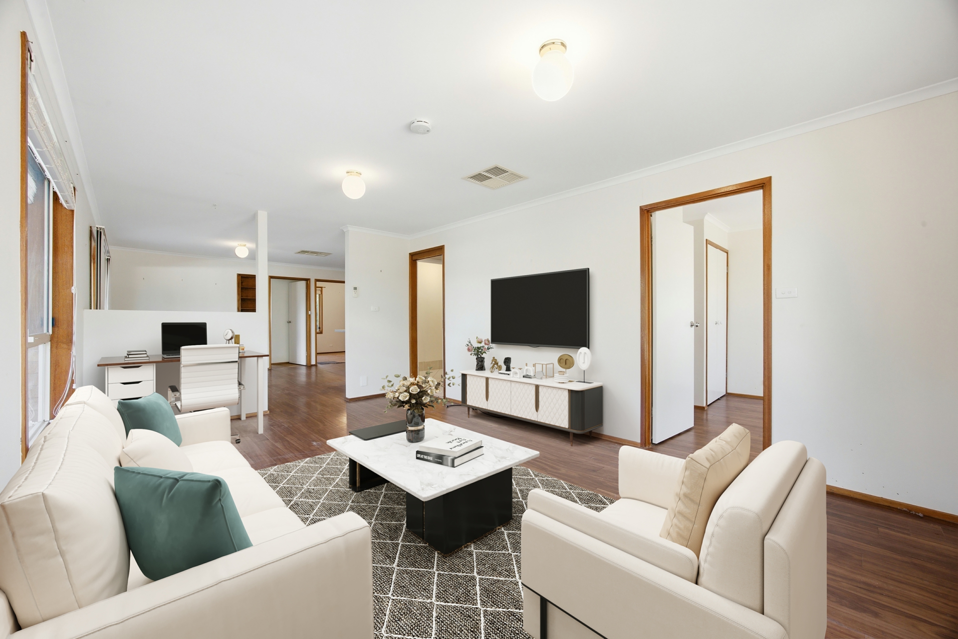 Accommodation includes three well-proportioned bedrooms, two with built-in robes, including a segregated main bedroom with convenient, ensuite style access to the two-way bathroom. The thoughtful layout, combined with a separate toilet and good-sized laundry, ensures excellent functionality for both individuals and families.