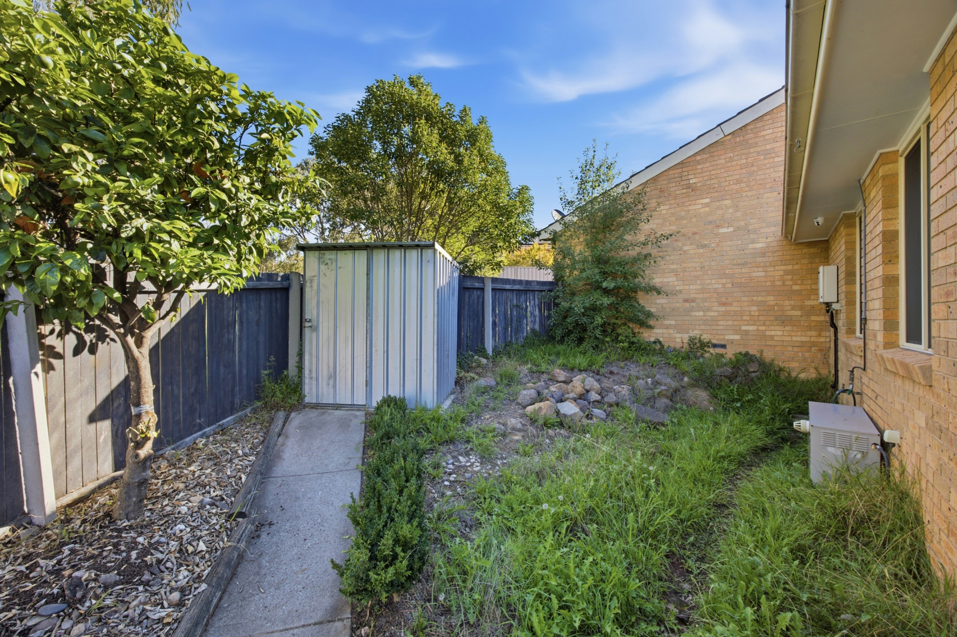 • Easy-care courtyard and gardens with garden shed