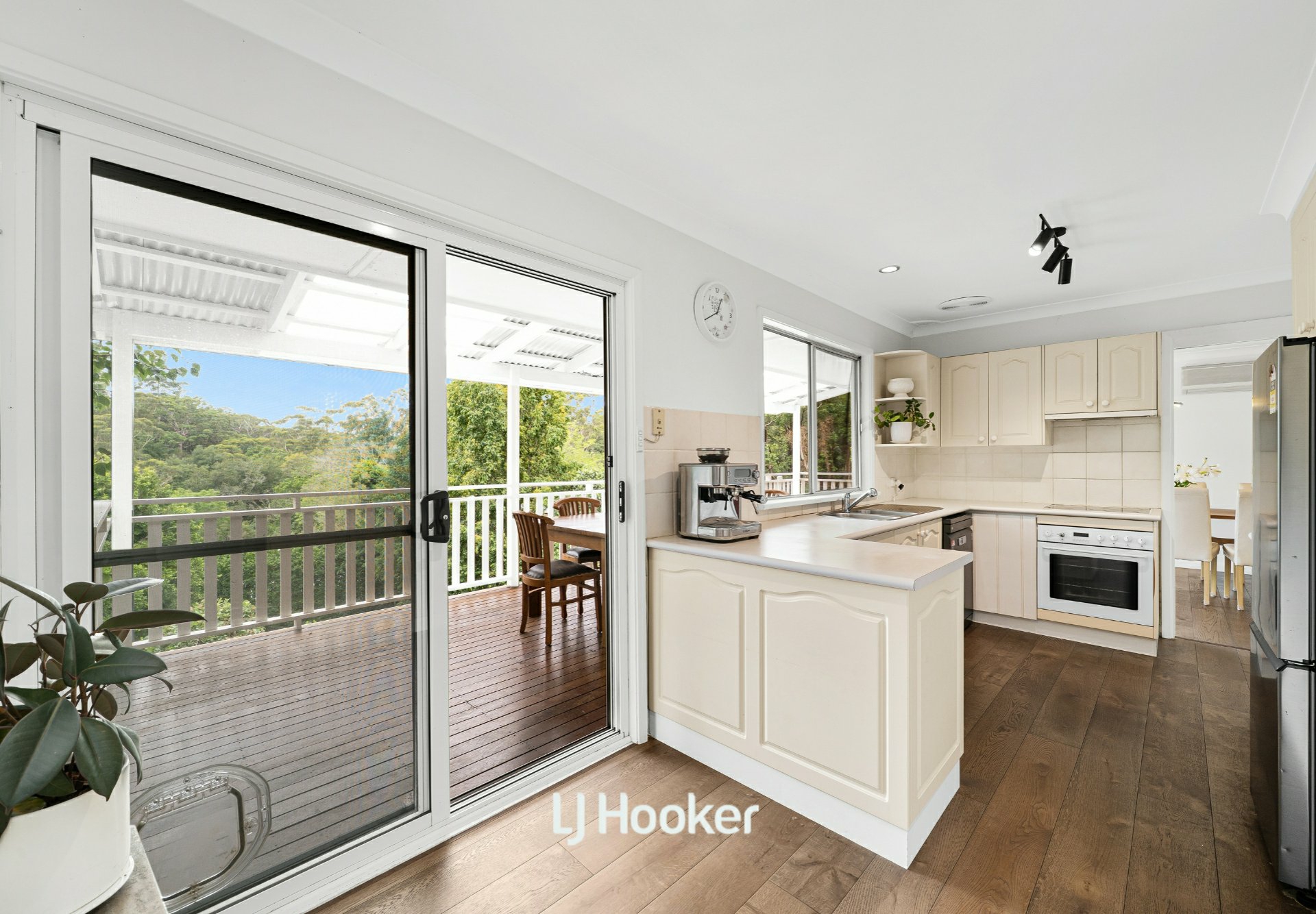- Sunny living and dining areas flowing to a covered entertaining deck