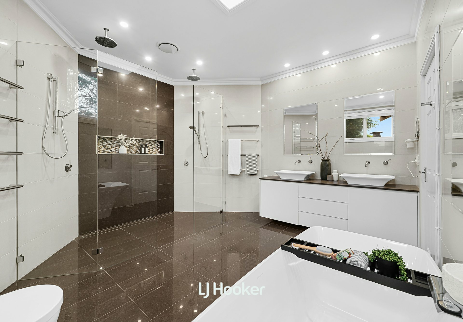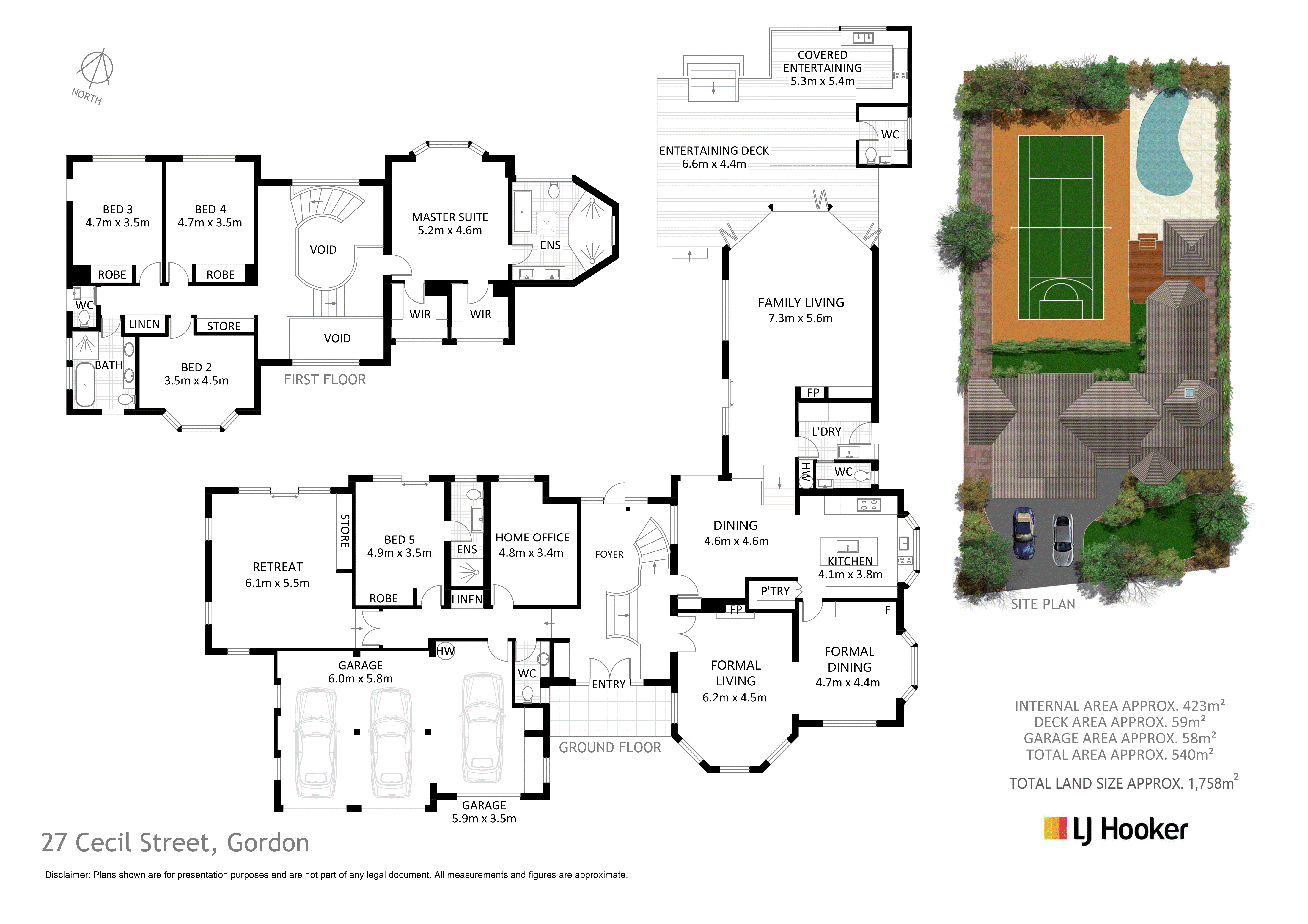 - Five sunlit bedrooms, including a master retreat on its own level with his and hers walk-in robes and expansive ensuite, provide sanctuary